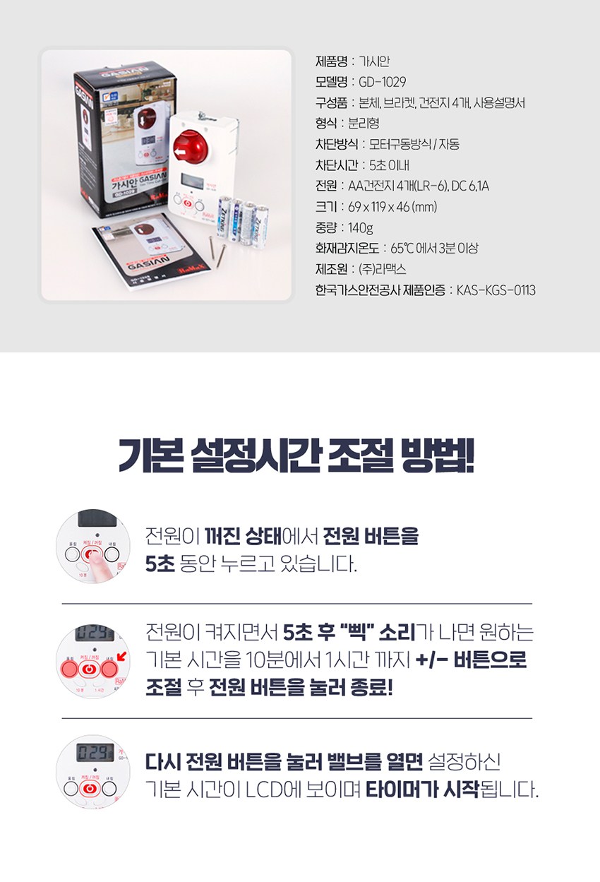 | 품명 및 모델명 | 전자식 타이머 / 가시안 GD-1029 | 인증/허가 사항 | MSIP-REM-RMX-GD-1029 |