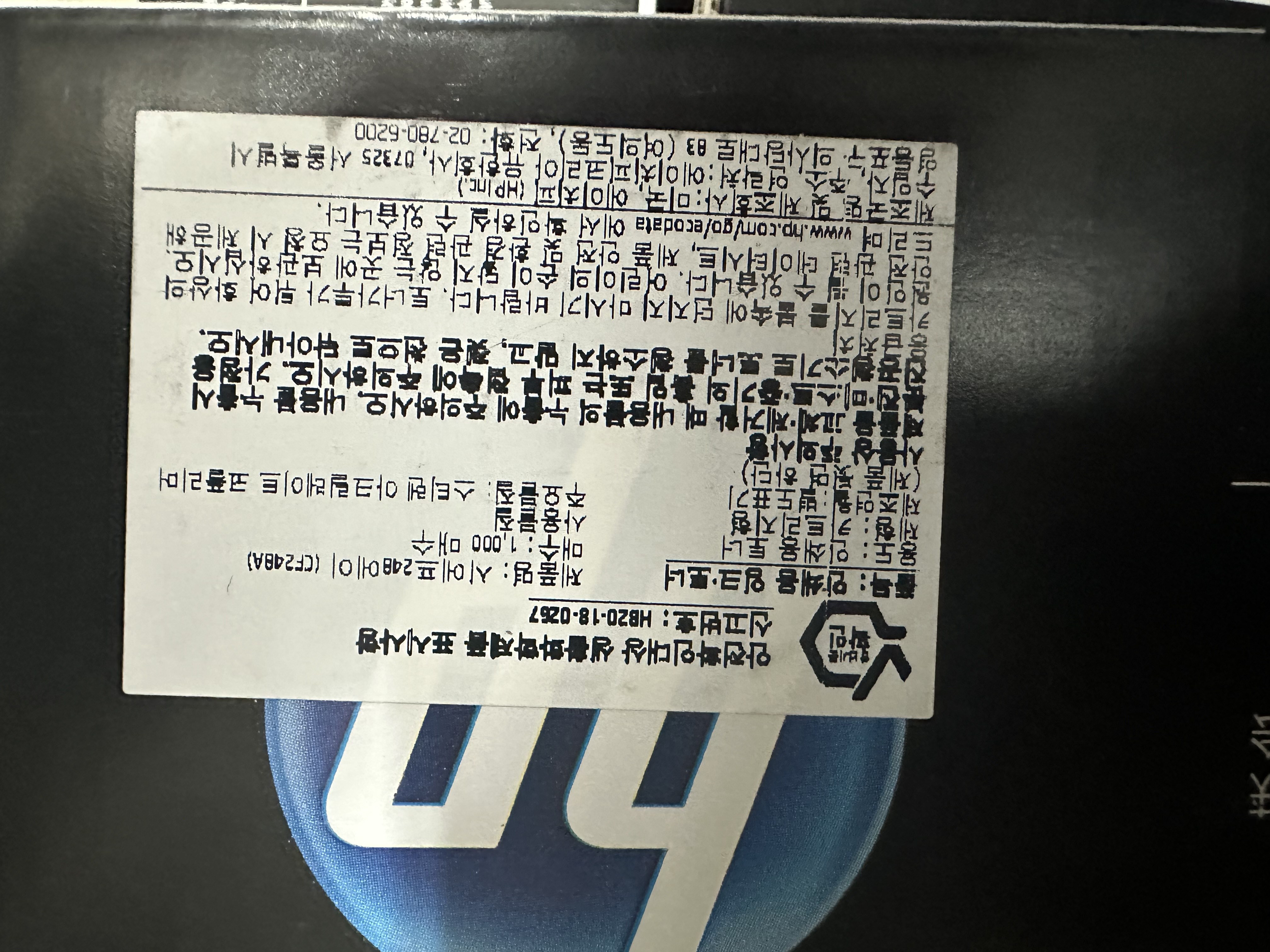 | 품목 및 제품명 | 인쇄용 잉크·토너 / 시에프248에이(CF248A) | 용도(표백제의 경우 계열을 함께표시) 및 제형 | 인쇄용 토너 / 카트리지형 |