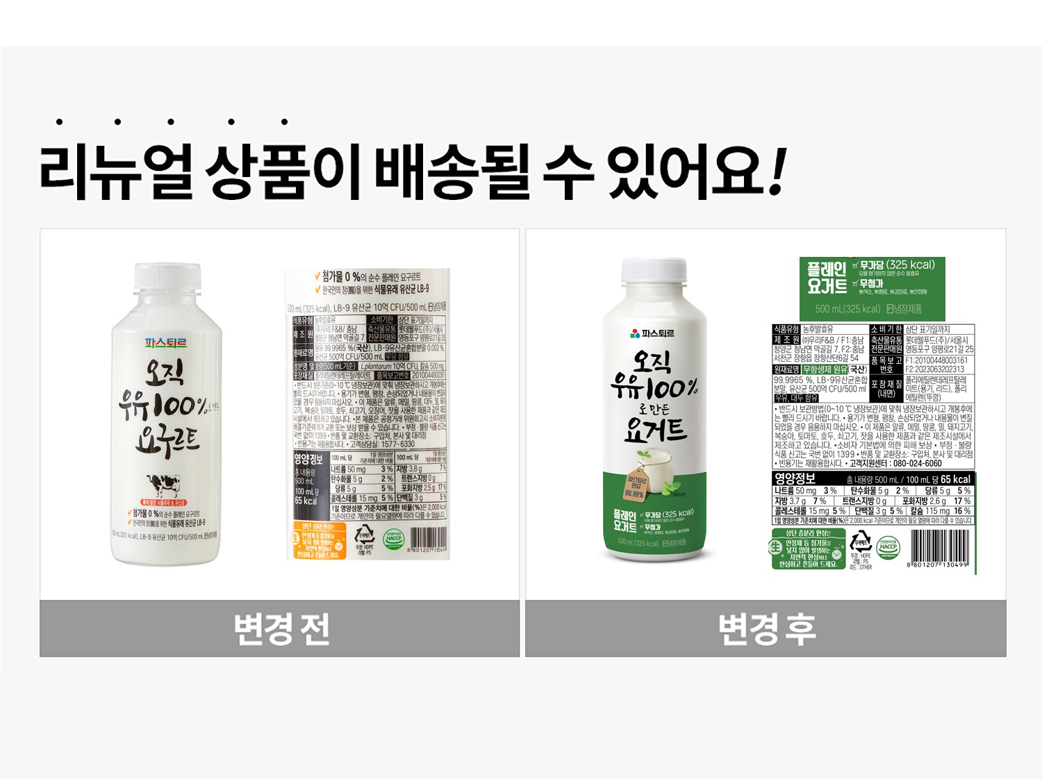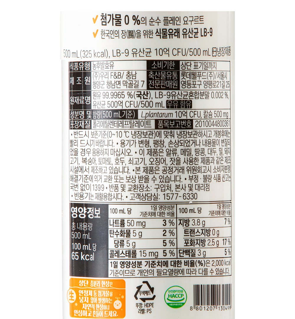 | 제품명 | 오직 우유 100%로 만든 요구르트 | 식품의 유형 | 컨텐츠 참조 |
