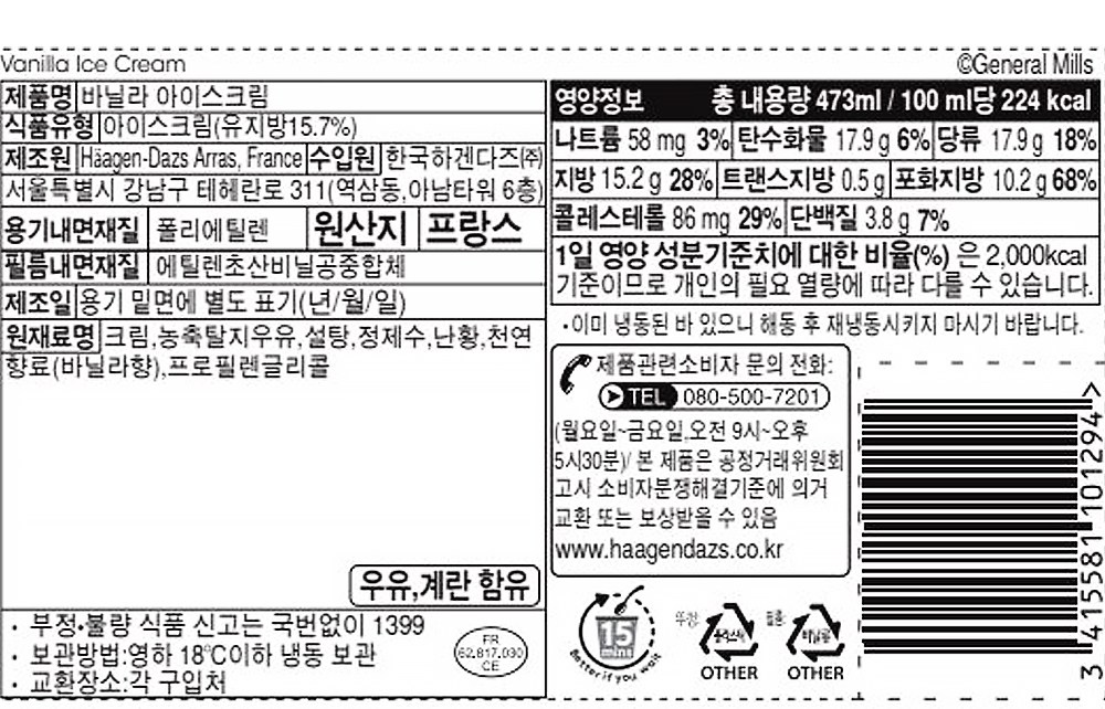 | 제품명 | 바닐라 아이스크림 | 식품의 유형 | 컨텐츠 참조 |