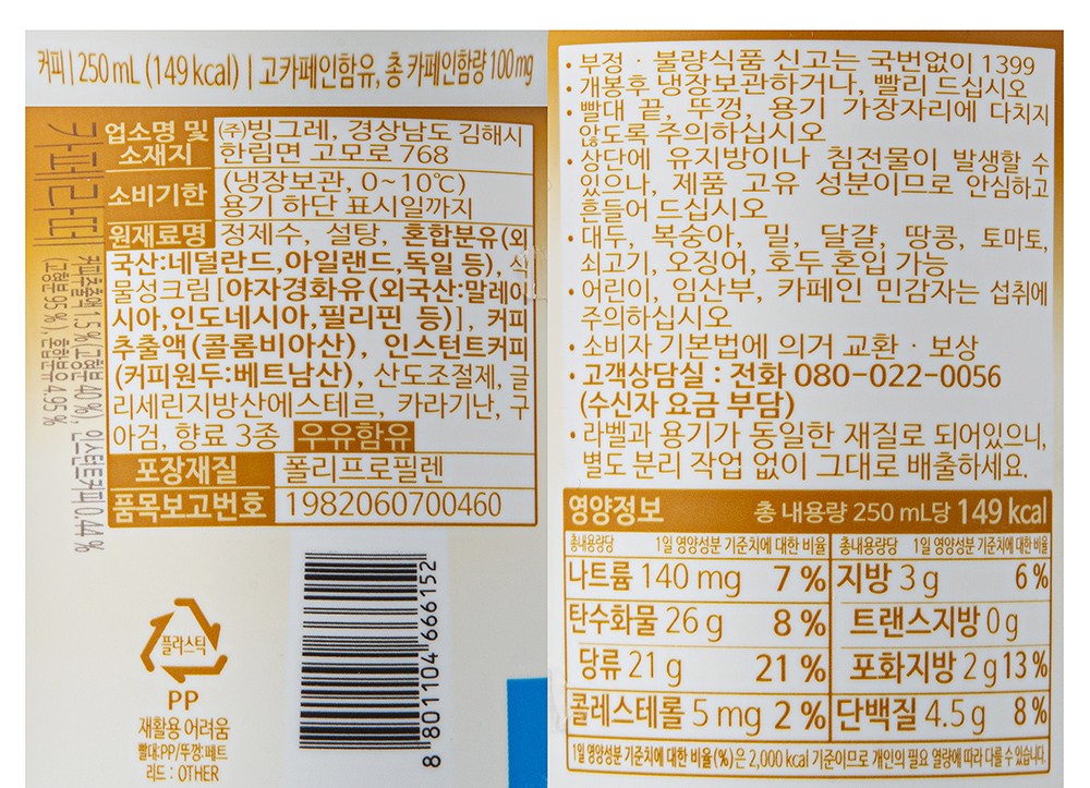 | 제품명 | 오늘의커피 카페라떼 | 식품의 유형 | 컨텐츠 참조 |