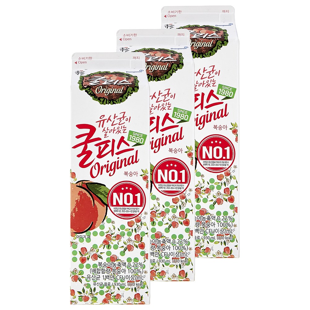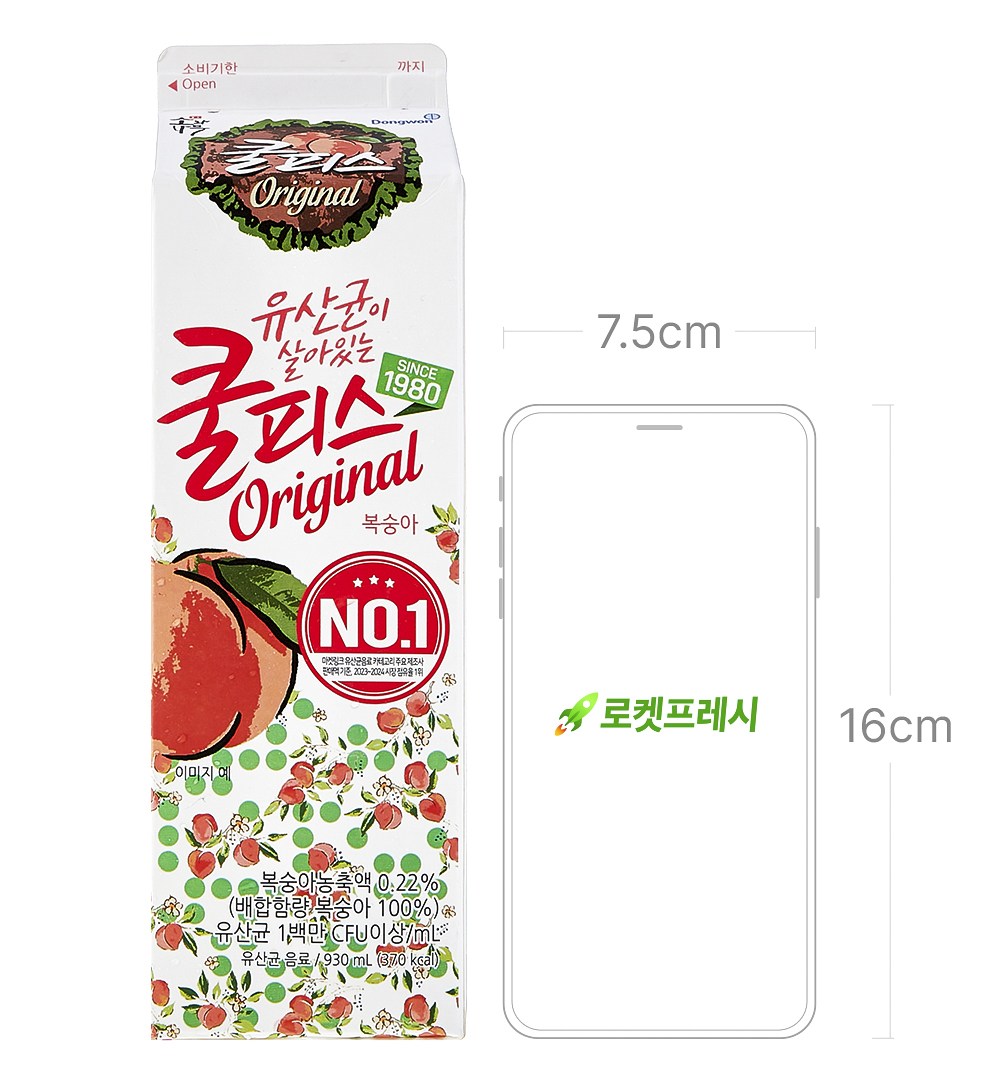 상큼한 복숭아 향을 자랑하는 쿨피스 복숭아예요. 1980년부터 오랜 시간 변함없는 달콤함을 전하고 있죠. 과일 본연의 진한 맛을 은은하게 담고 있으니, 한번 맛보면 잊을 수 없는 맛이랍니다. 그대로 마셔도 기분 좋은 상쾌함을 안겨주지만, 화채나 셔볏 등으로 만들어도 참 맛있어요.