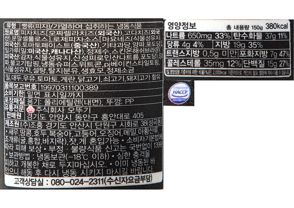 | 제품명 | UNO컵피자포테이토 | 식품의 유형 | 컨텐츠 참조 |
