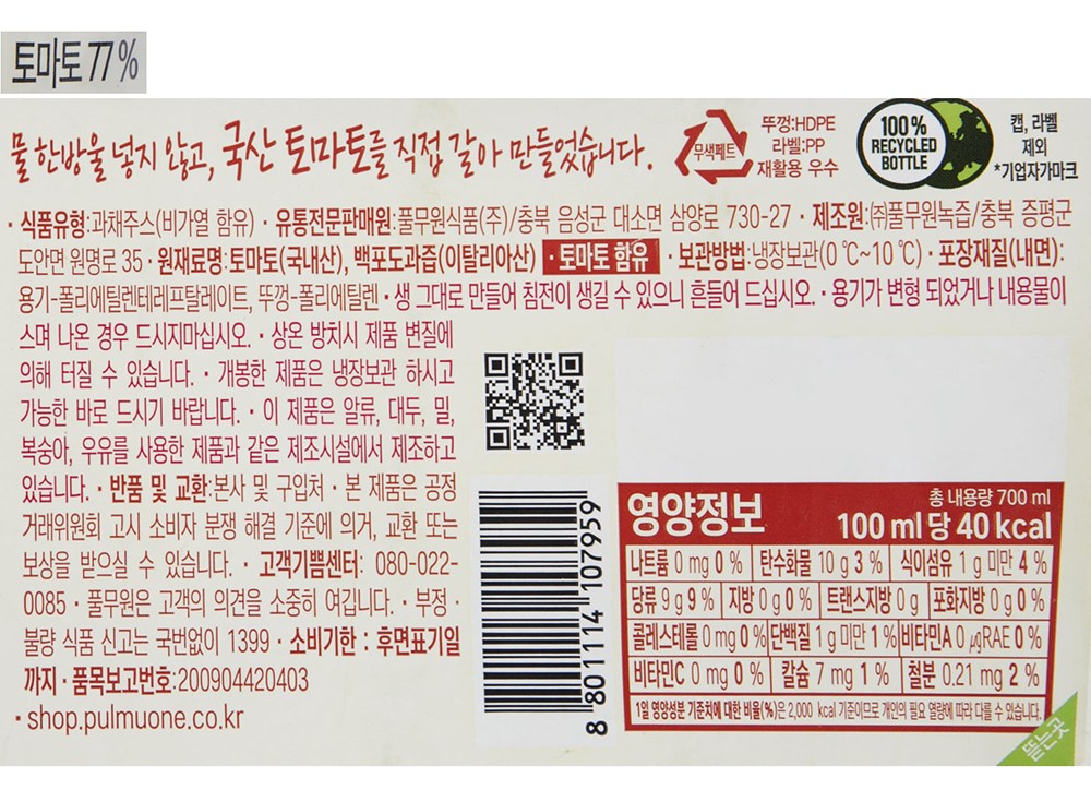 | 제품명 | 아임리얼토마토 | 식품의 유형 | 컨텐츠 참조 |