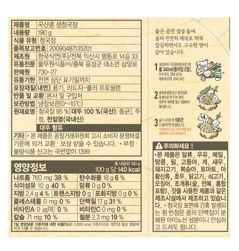 | - 구수하면서도 깔끔한 맛의 생청국장 | |