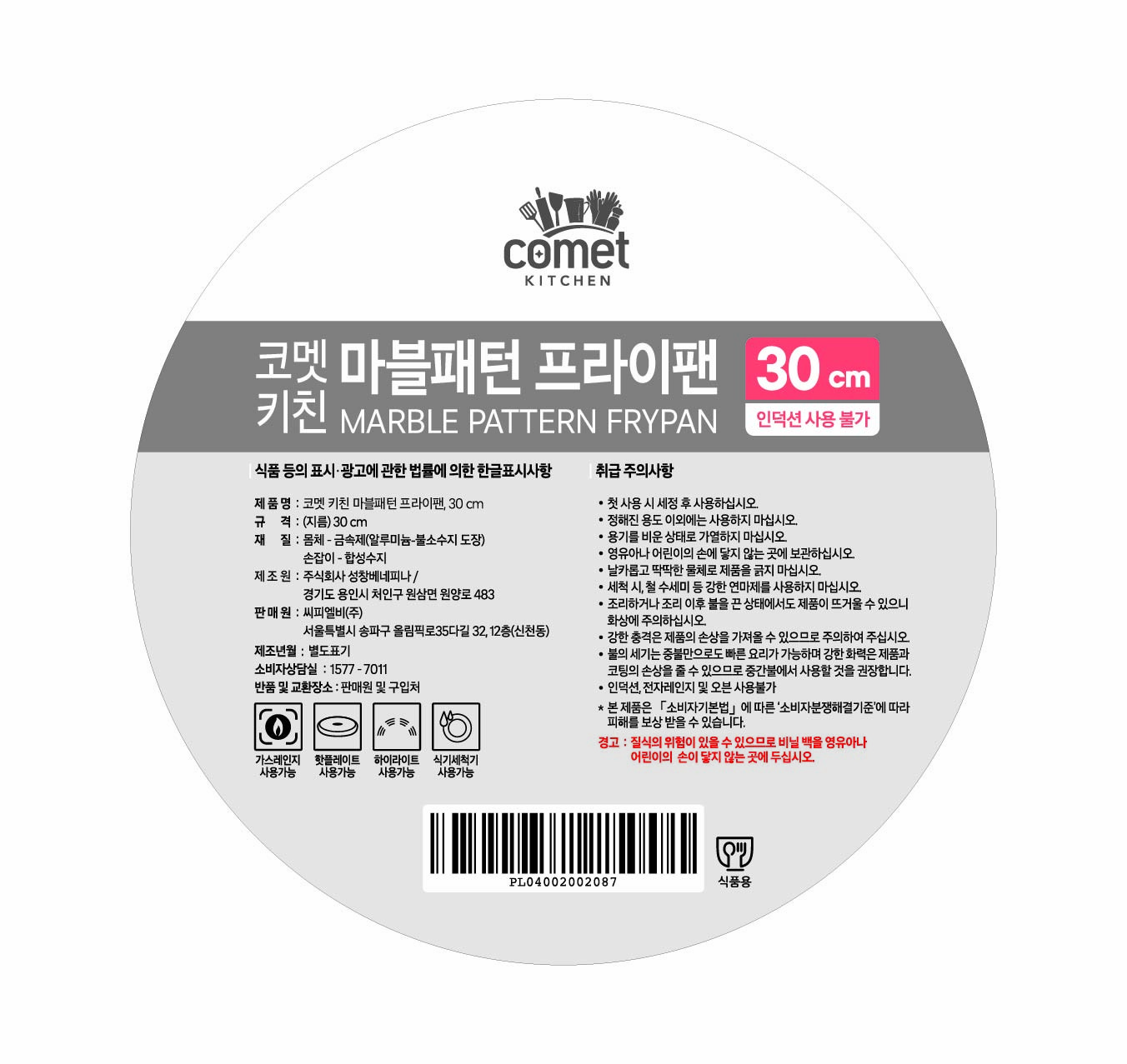 | 품명 및 모델명 | 코멧 키친 마블패턴 프라이팬 30 | 재질 | 컨텐츠참조 |