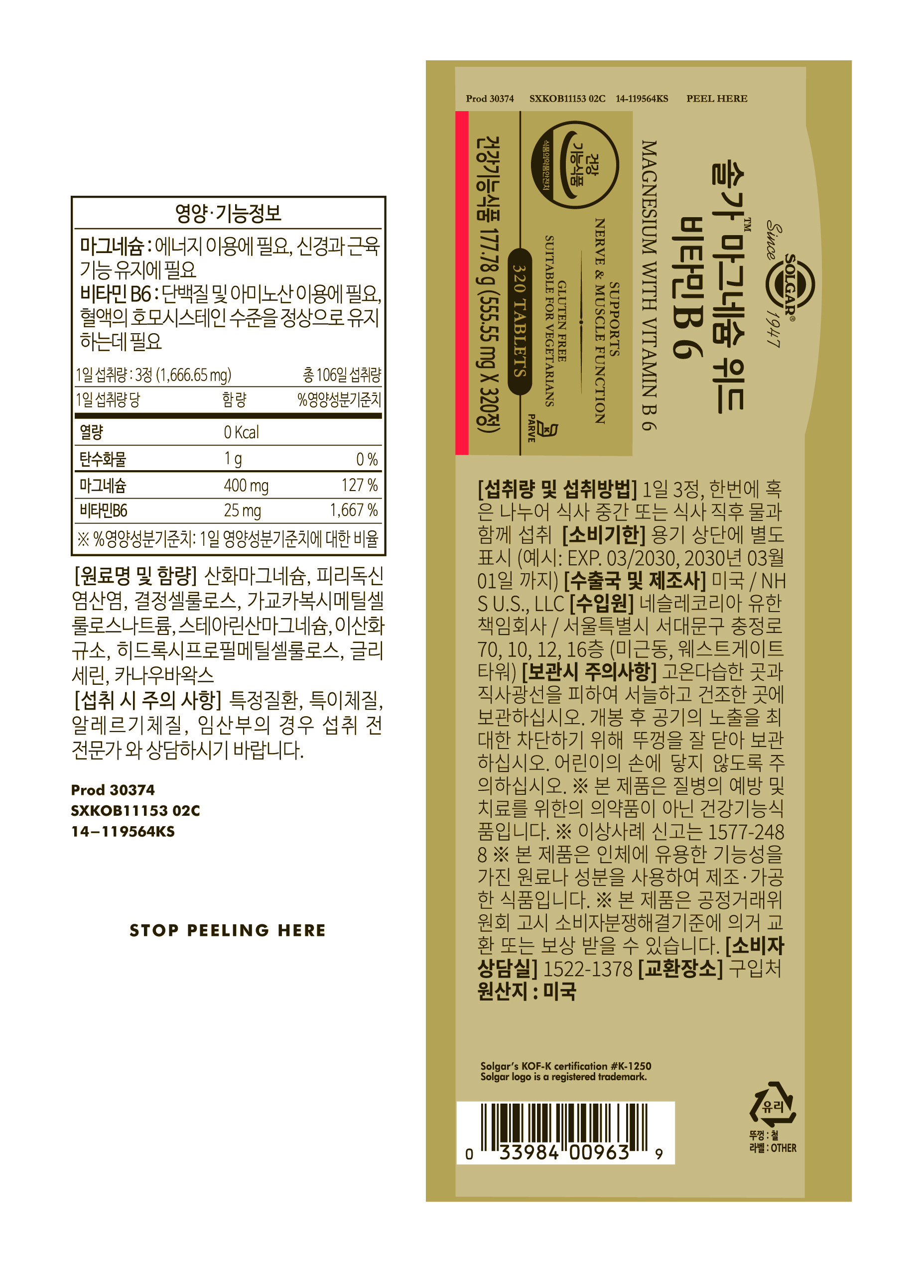 개당 캡슐/정 × 수량: 320정 × 1개