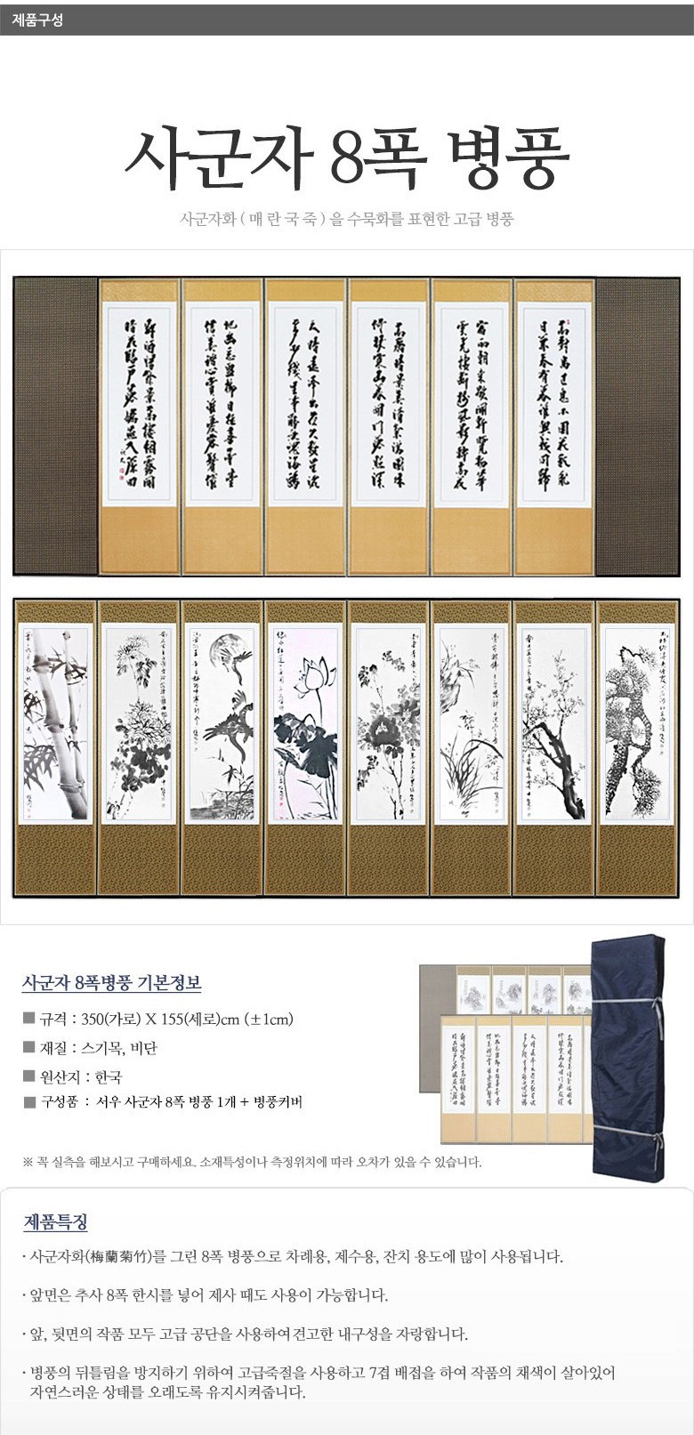 | 품명 및 모델명 | 서우 사군자8폭 병풍 | 인증/허가 사항 | 해당사항없음 |