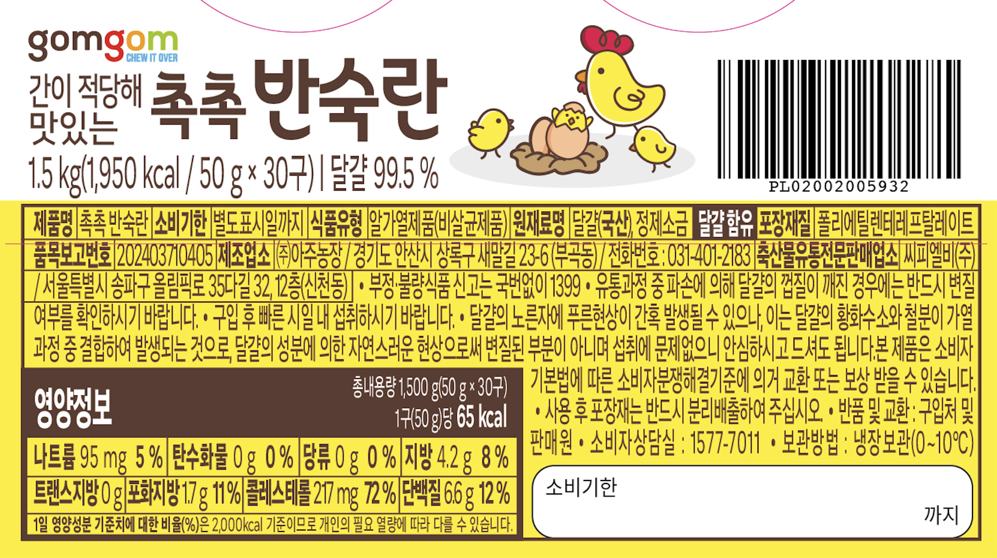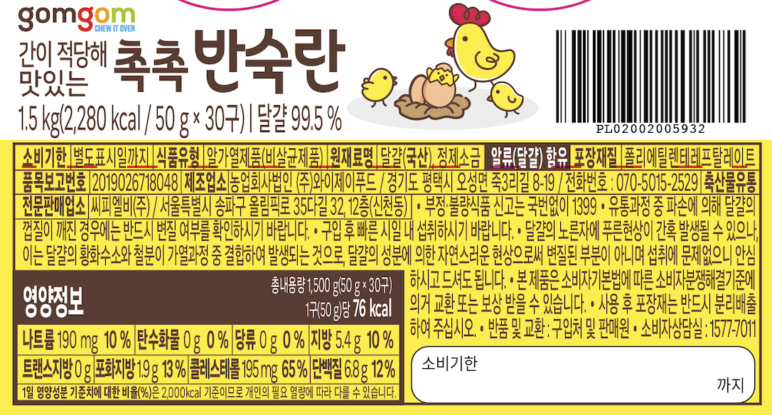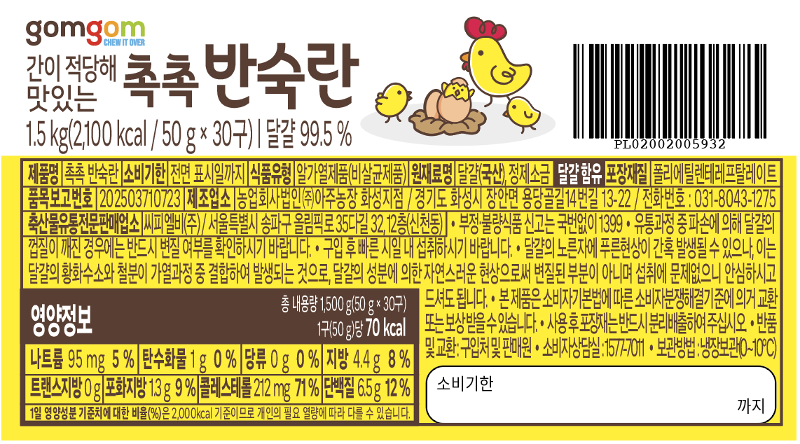 | 제품명 | 촉촉 반숙란 | 식품의 유형 | 컨텐츠 참조 |