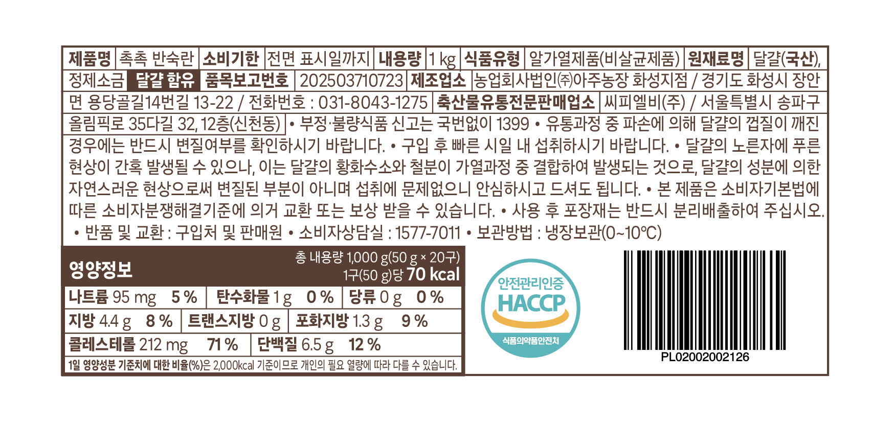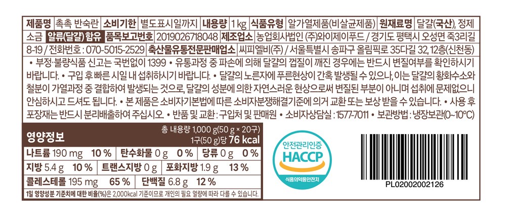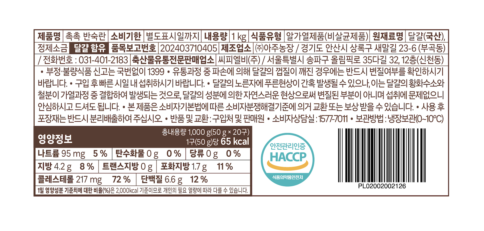 | 제품명 | 곰곰 반숙란 | 식품의 유형 | 컨텐츠 참조 |