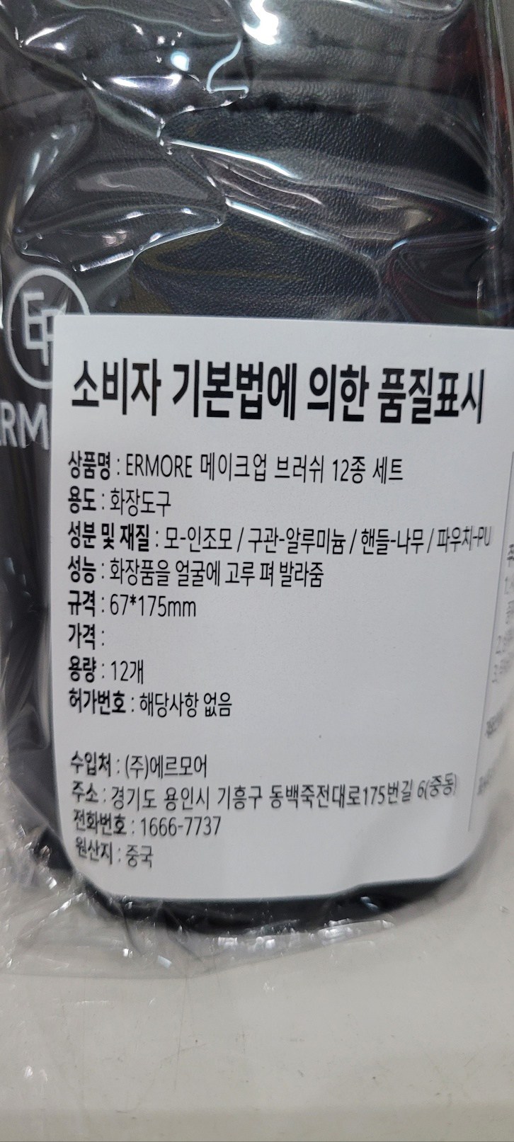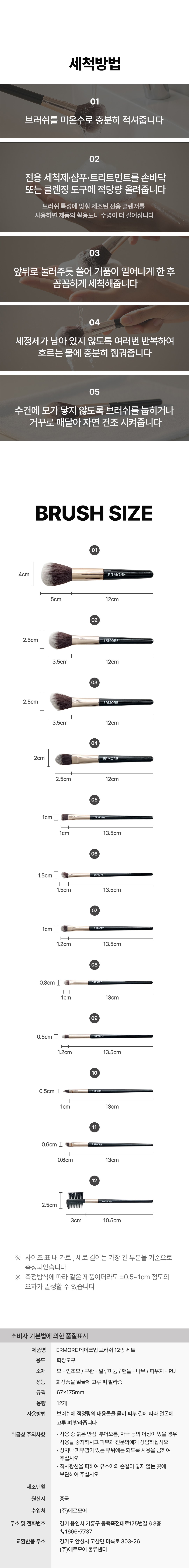 | 품명 및 모델명 | 에르모어 메이크업 브러쉬 12종 세트 | 인증/허가 사항 | 해당없음(14세 이상) |