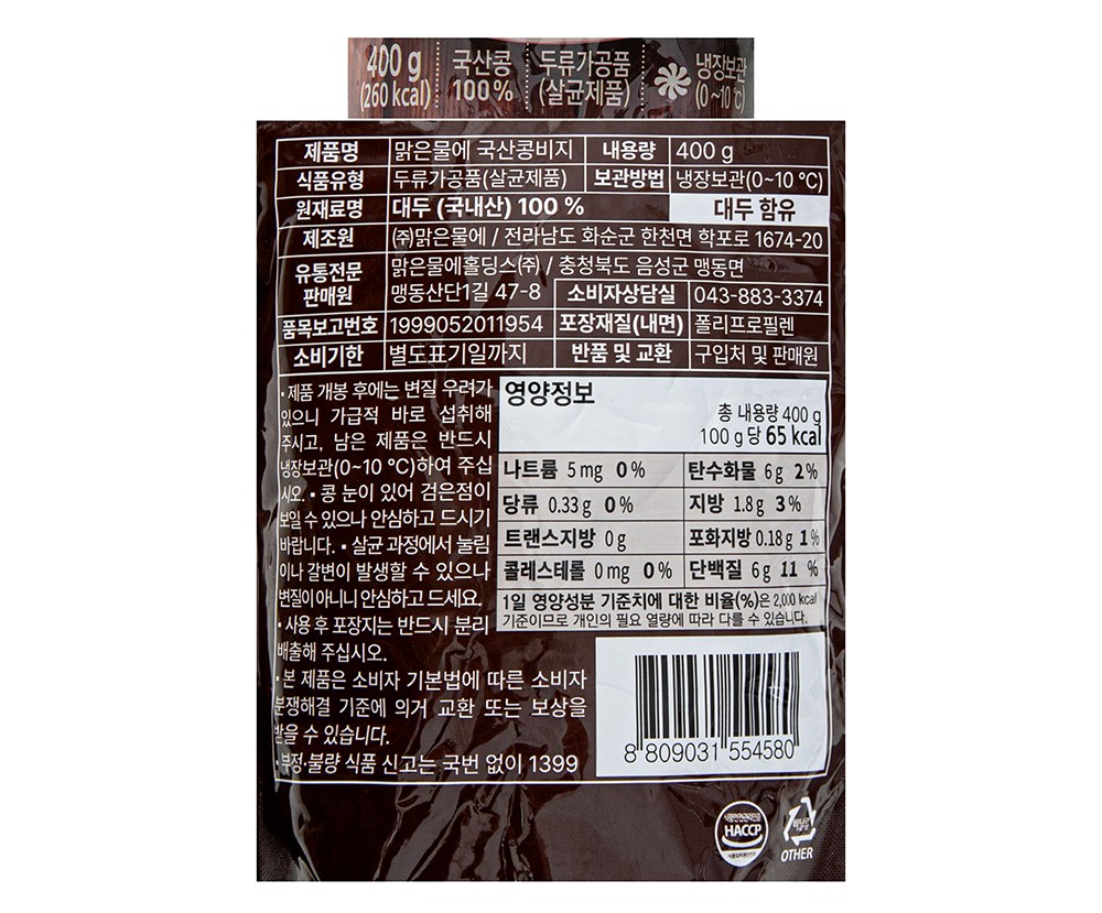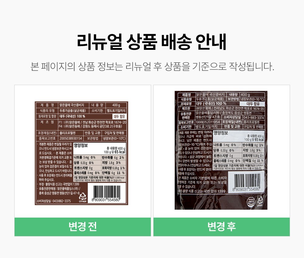 | 비지 속 검은 점은 콩 눈이에요. 또한, 살균 과정에서 눌림이나 갈변이 발생할 수 있으나 변질이 아니니 안심하고 드세요. |
