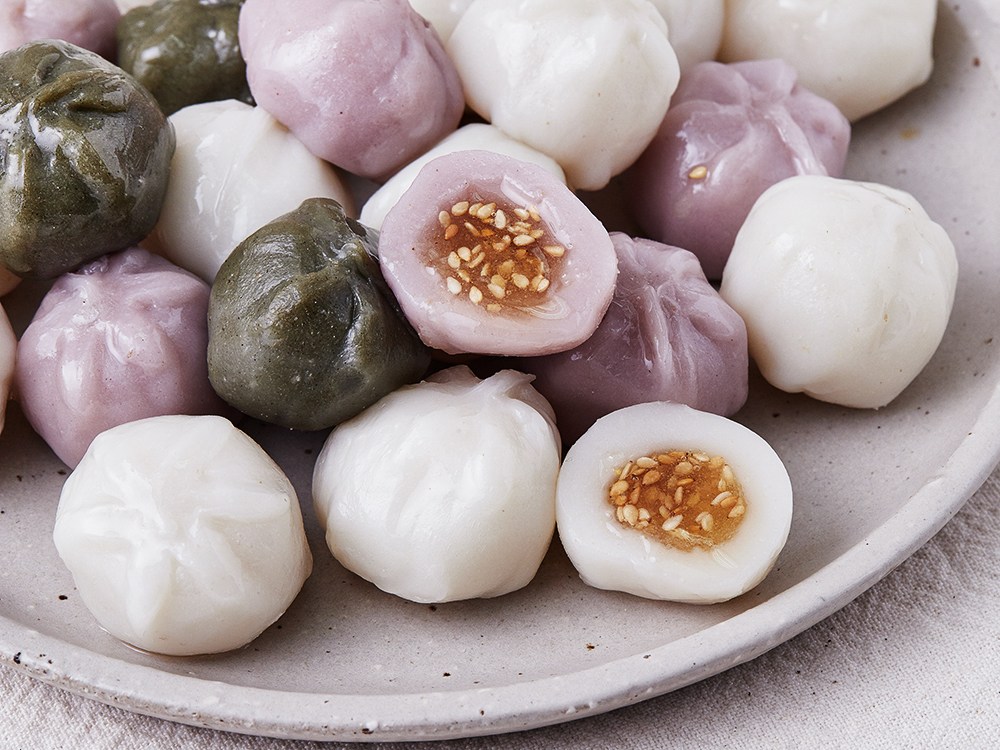 입과 눈이 즐거운 우리의 간식, 착한마음 마음이가의 삼색 꿀떡을 만나보세요. 맵쌀로 정성껏 빚어 고유의 쫀득쫀득하면서도 부드러운 식감을 맛볼 수 있는데요. 쑥 가루와 자색고구마 가루로 은은한 듯 먹음직스러운 색감까지 가미했답니다. 한입에 쏙 들어가는 앙증맞은 크기의 꿀떡 속에는 그 이름만큼이나 달콤한 깨 앙금이 들어있답니다.