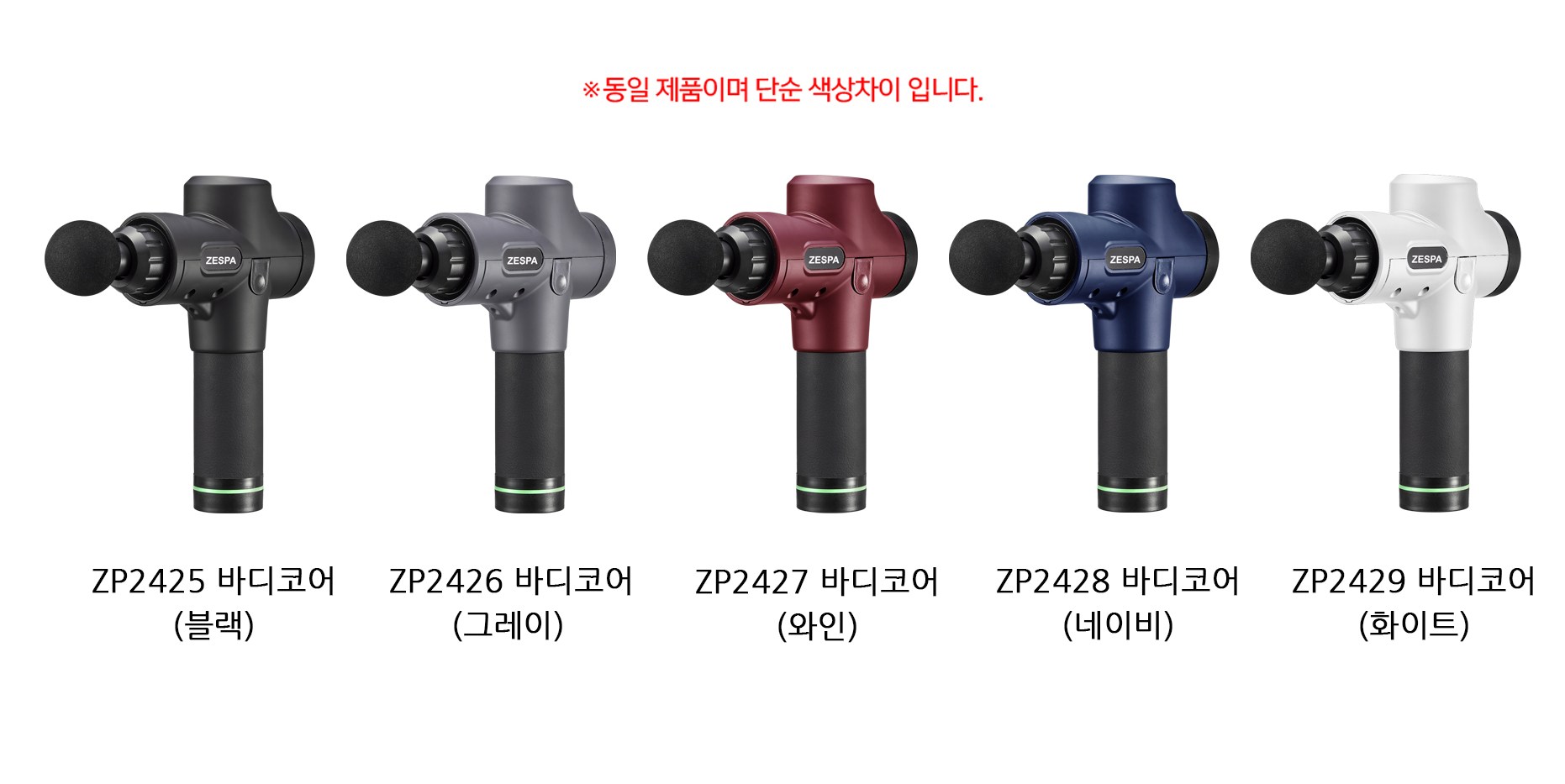 | 품명 및 모델명 | 제스파 바디코어 전신 안마기 진동 무선 핸디형 마사지건 / ZP2425 | KC 인증정보 | 본품:R-R-ZSP-ZP4270 , 어댑터: HU101015-19003A |