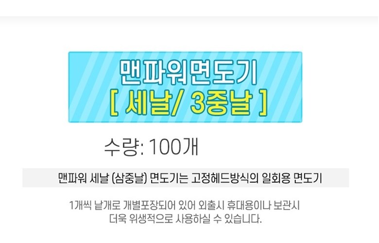 | 품명 및 모델명 | 맨파워(쓰리날100개) | 인증/허가 사항 | 해당없음 |