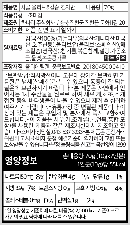 | 제품명 | 컨텐츠참조 | 식품의 유형 | 조미김 |