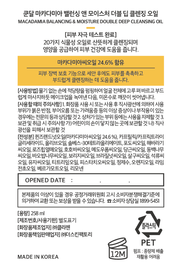 | 용량(중량) | 258ml | 제품 주요 사양 | 모든 피부용 |