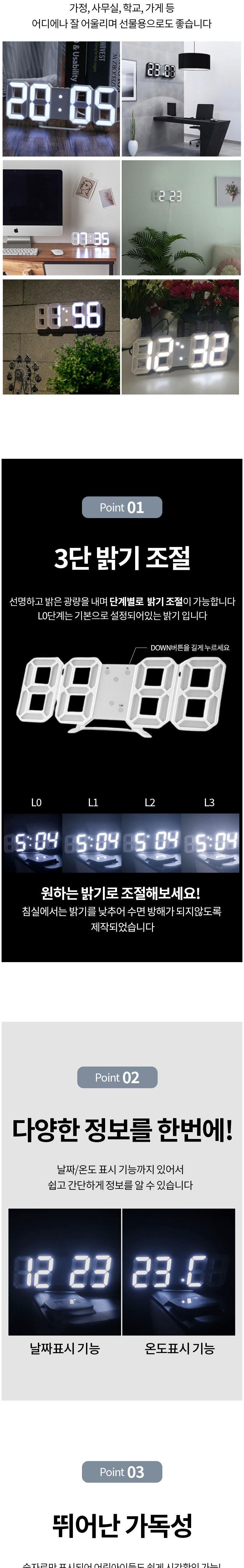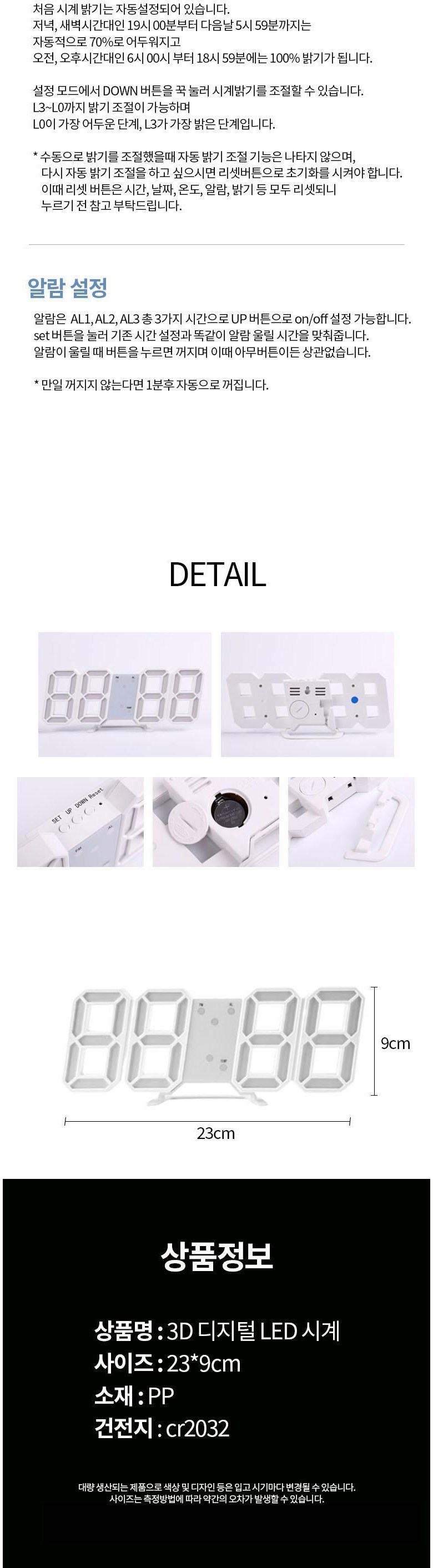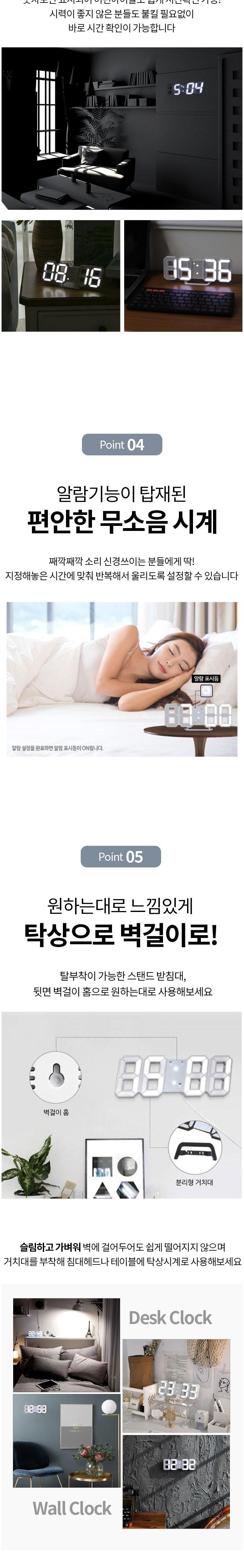 무소음 디지털 LED 인테리어 시계 탁상용 벽걸이 겸용