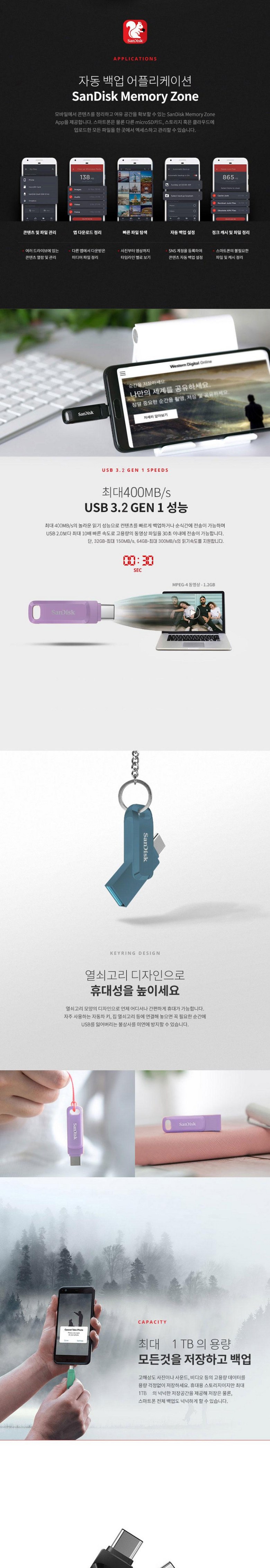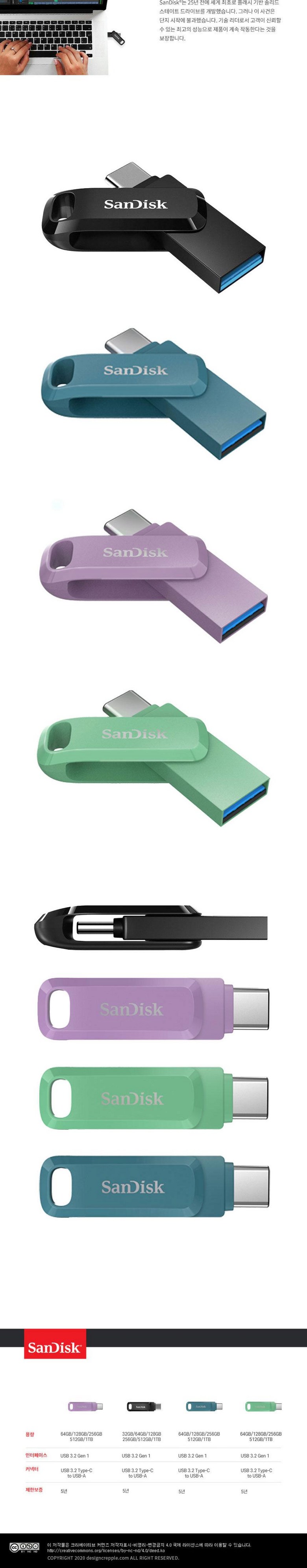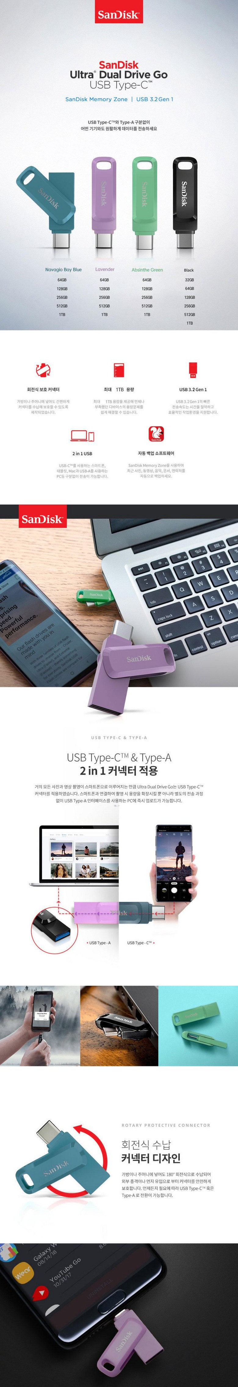 샌디스크 공식인증제품 USB 메모리 Ultra Dual Go 울트라 듀얼 고 Type-C OTG USB 3.1 SDDDC3 256GB