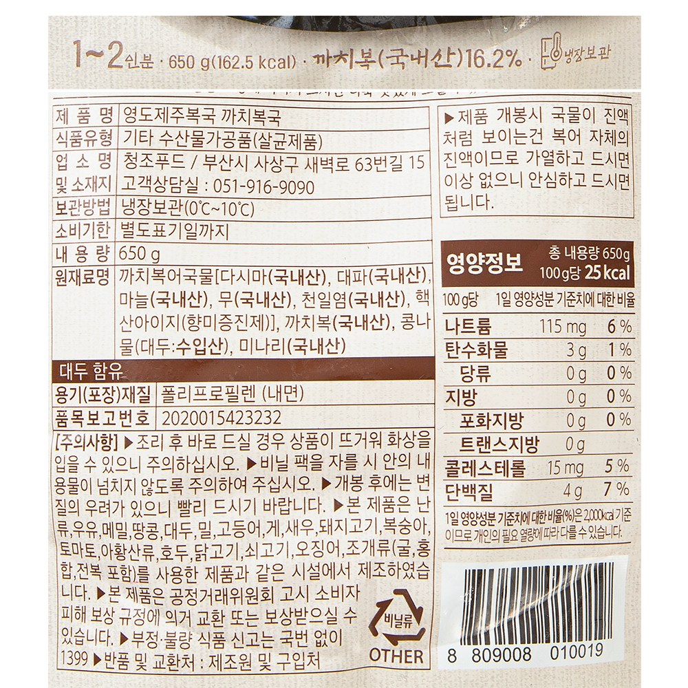 - 구성품: 까치복국 2개