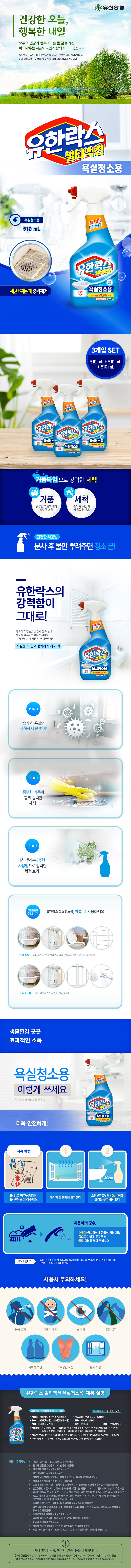 | 품목 및 제품명 | 세정제,살균제/유한락스 욕실청소용 | 용도(표백제의 경우 계열을 함께표시) 및 제형 | 일반용-욕실용,일반용-일반물체용/분사형-분무기형 |