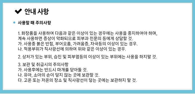 | 사용기한 또는 개봉 후 사용기간 | 본 상품은 해당 물류센터 직발송 상품인 관계로 제조연월일 및 사용기한 정보가 매번 변경되므로 상단 사용기한 정보를 참고해 주세요. | 사용방법 | 적당량을 덜어 눈 주위 피부에 부드럽게 두드려 흡수시켜줍니다 |