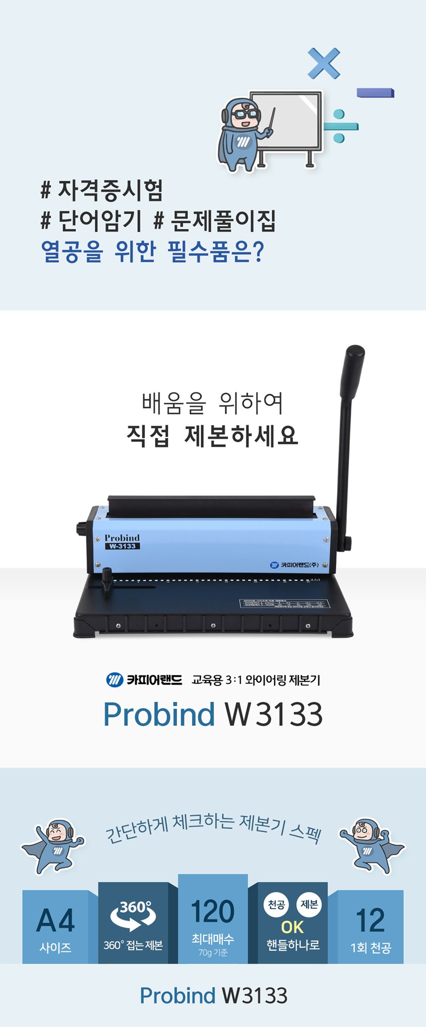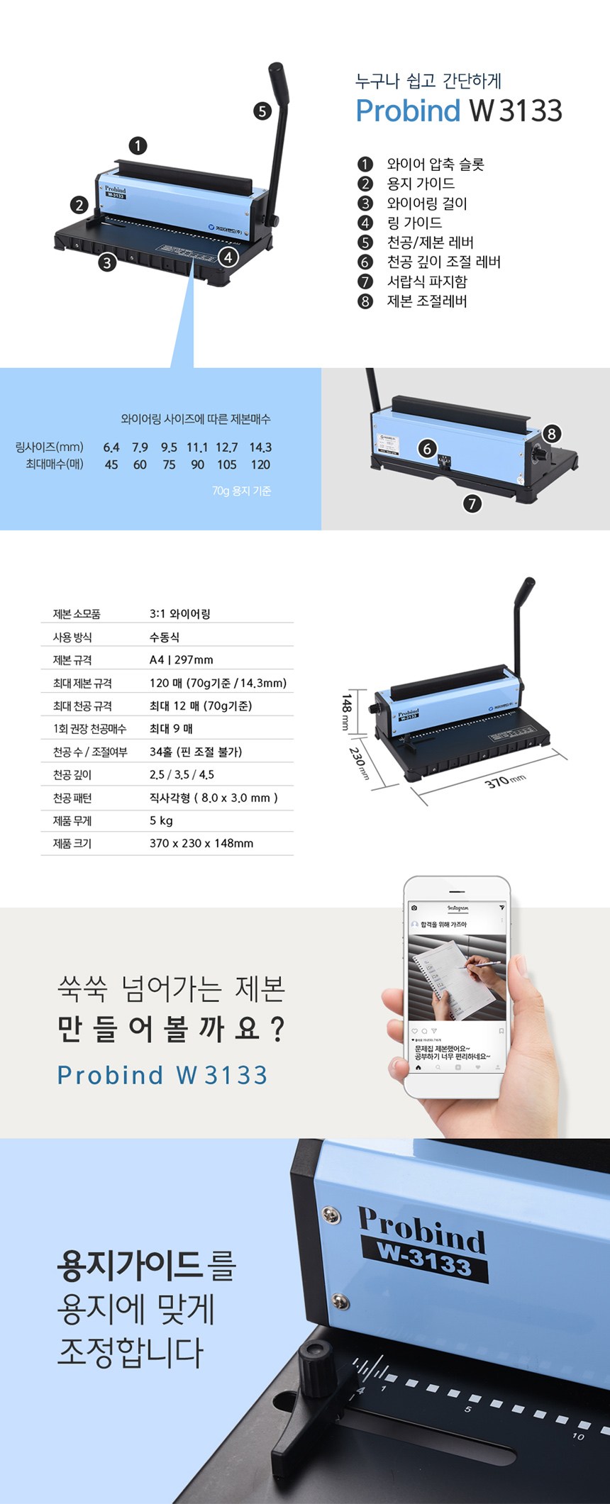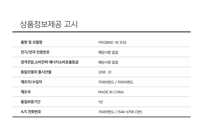 | 품명 및 모델명 | 3:1 와이어링 제본기 Probind W3133 | KC 인증정보 | 해당없음 |