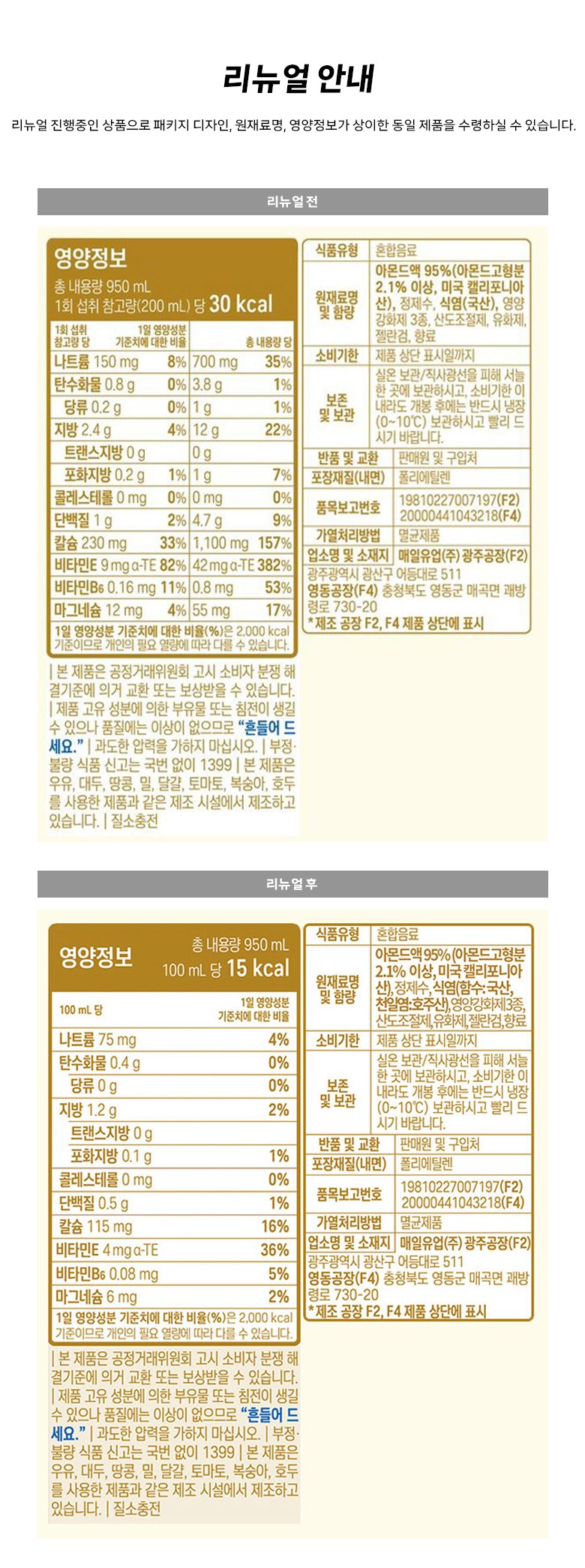 | 제품명 | 아몬드브리즈 언스위트 | 식품의 유형 | 컨텐츠 참조 |