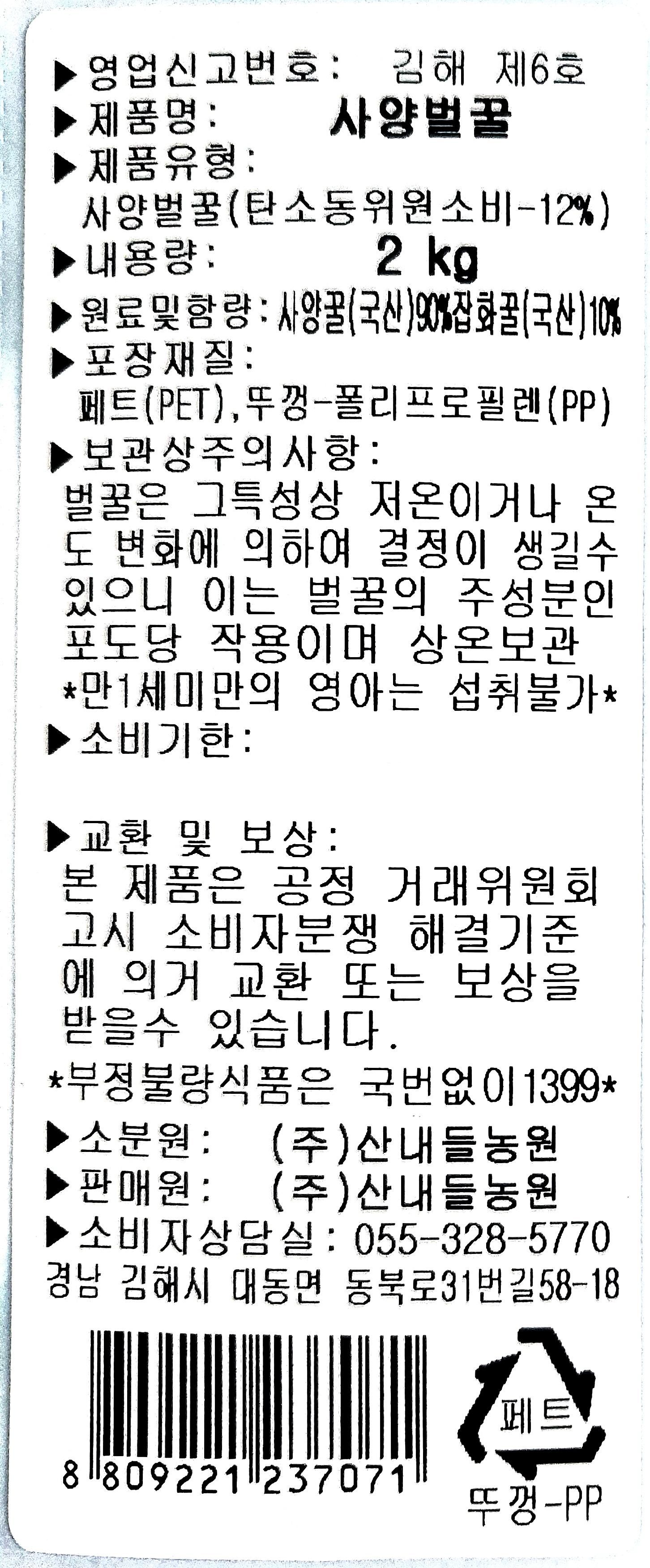 | 제품명 | 사양벌꿀 | 식품의 유형 | 컨텐츠참조 |