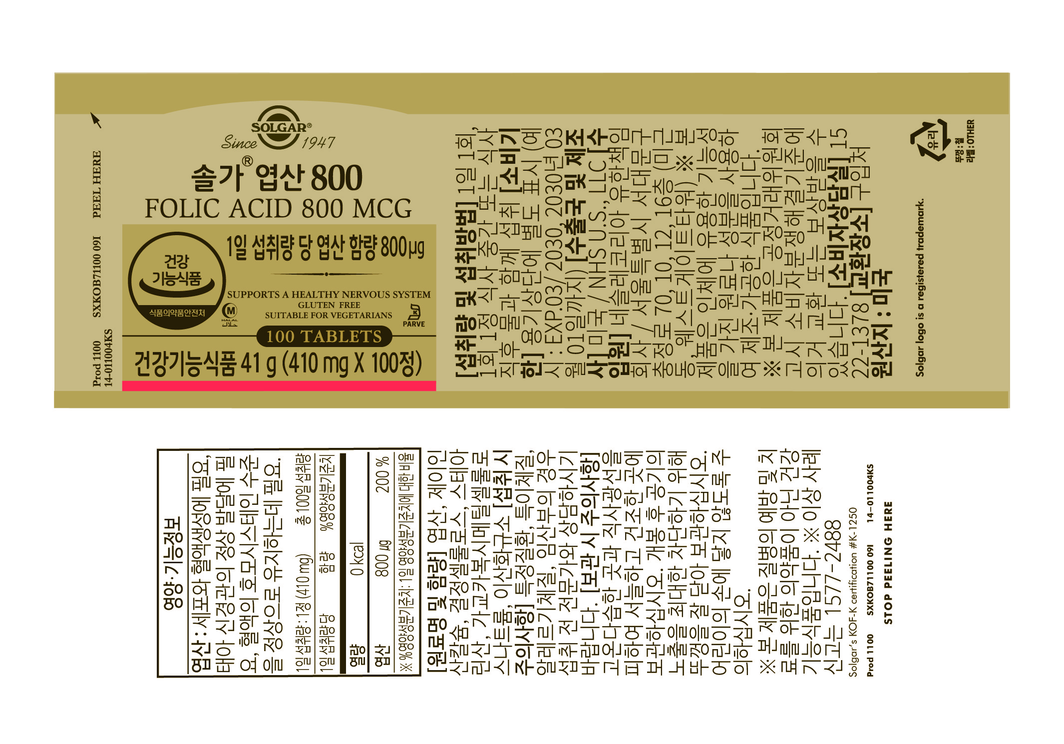 | 제품명 | 솔가 엽산 800 | 제조업소의 명칭과 소재지 | 컨텐츠 참조 |
