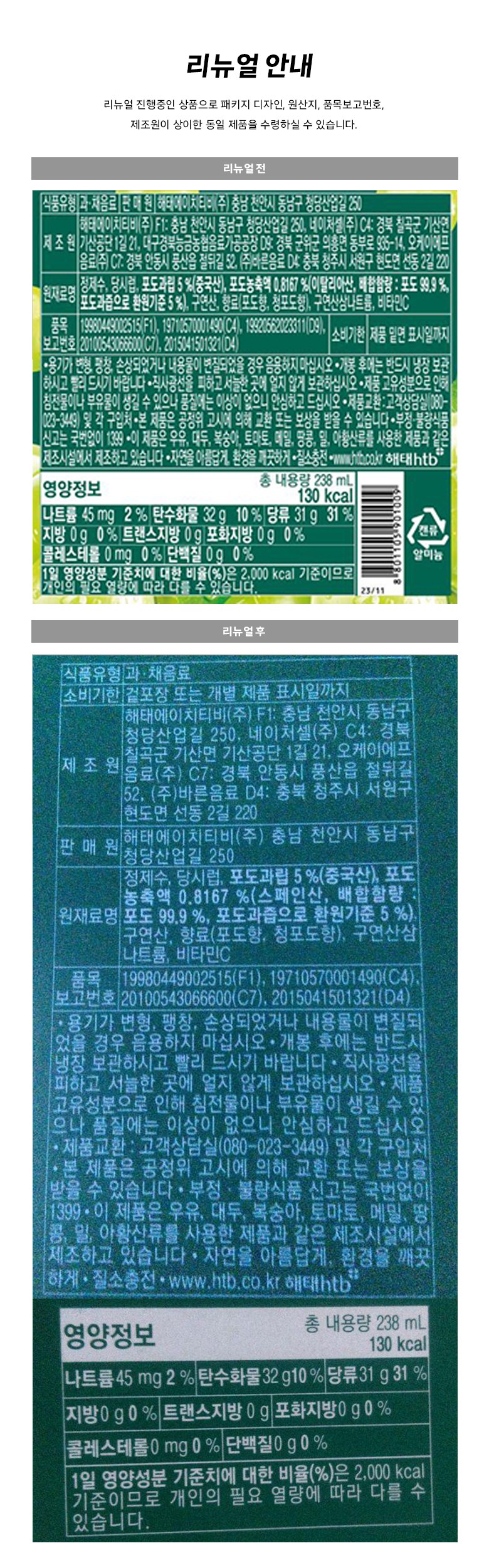| 포장단위별 내용물의 용량(중량), 수량 | 238ml, 36개 | 원재료명 및 함량 | 컨텐츠 참조 |