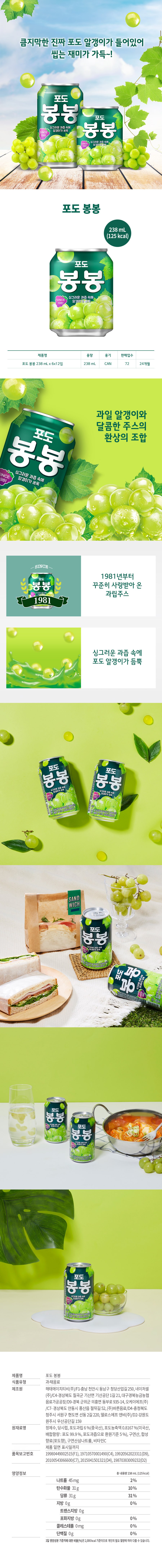 | 제품명 | 포도봉봉 | 식품의 유형 | 과채음료 |