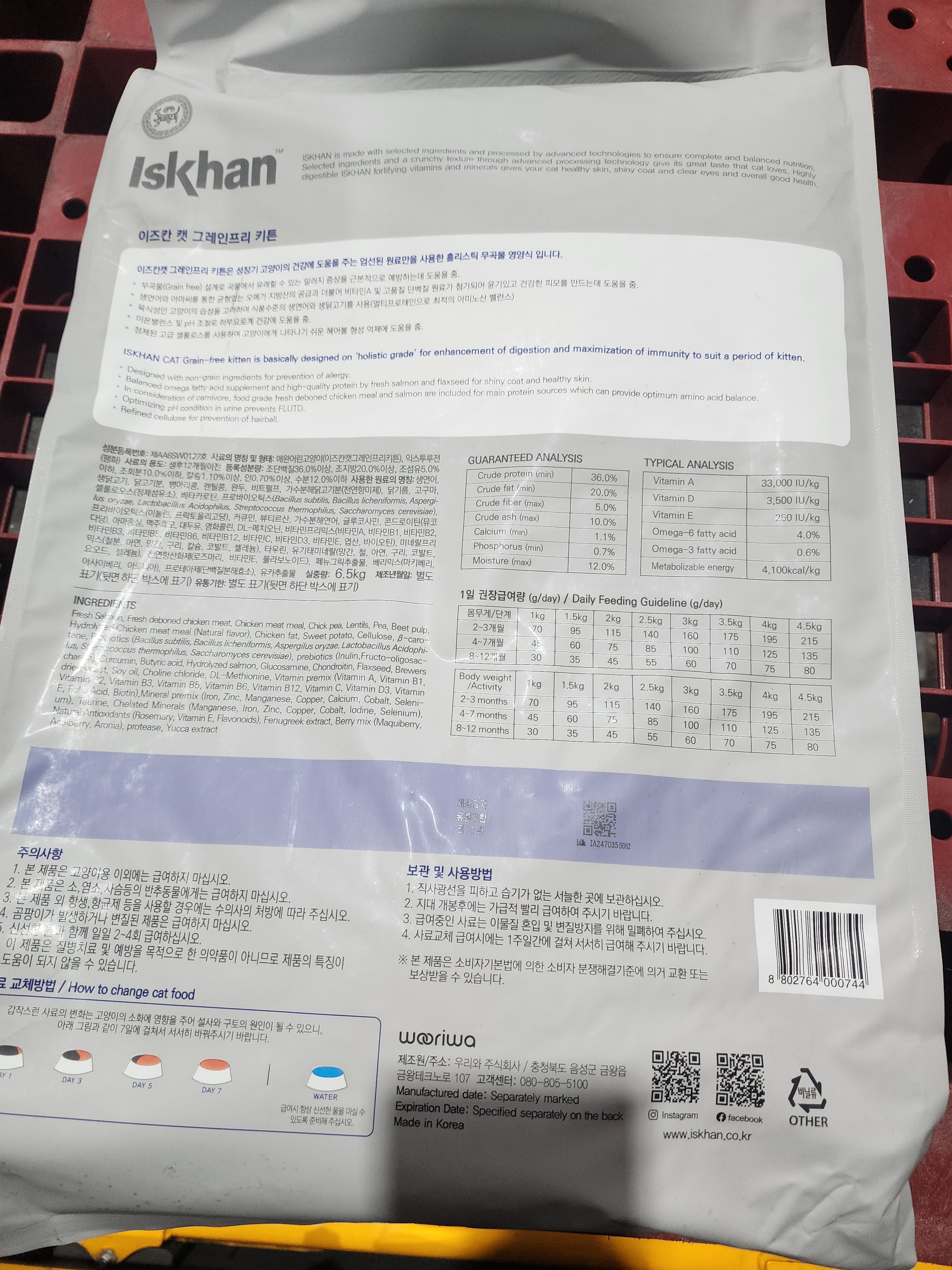 | 품명 및 모델명 | 이즈칸 캣 그레인프리 키튼 | 인증/허가 사항 | 사료관리법에 따른 성분등록번호 : 컨텐츠 참조 |
