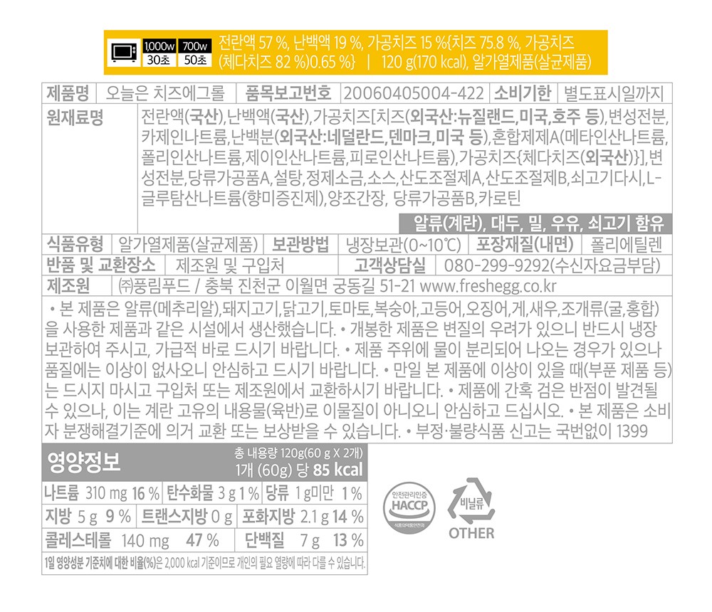 | 제품명 | 오늘은 치즈에그롤 | 식품의 유형 | 컨텐츠 참조 |