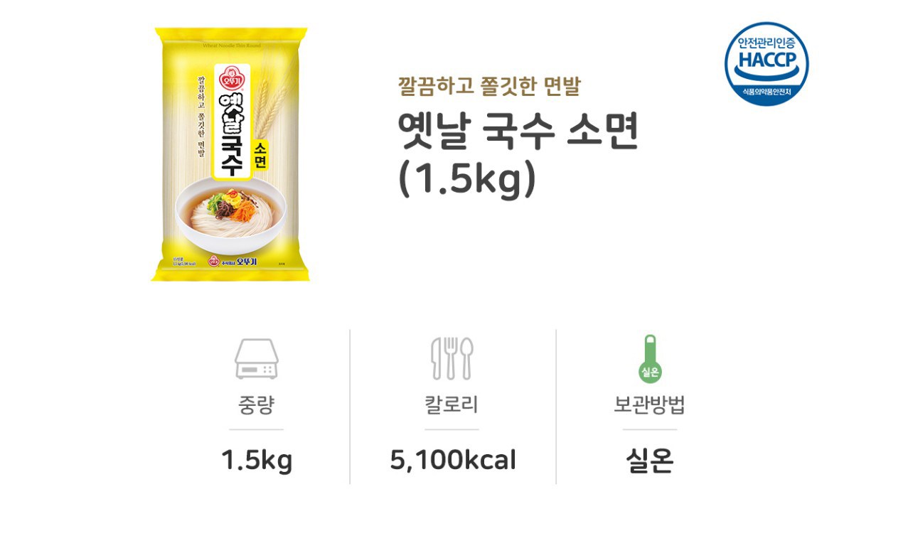| 제품명 | 옛날 국수 소면 | 식품의 유형 | 국수 |