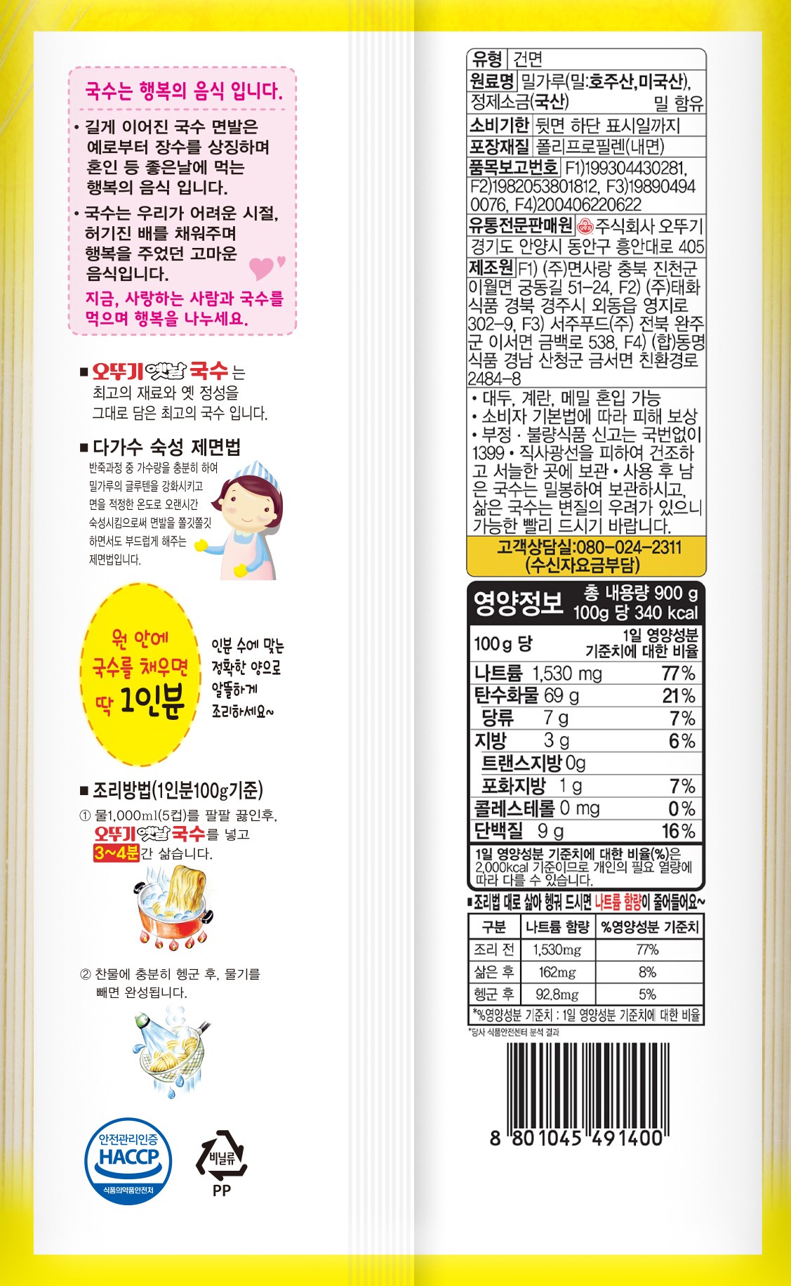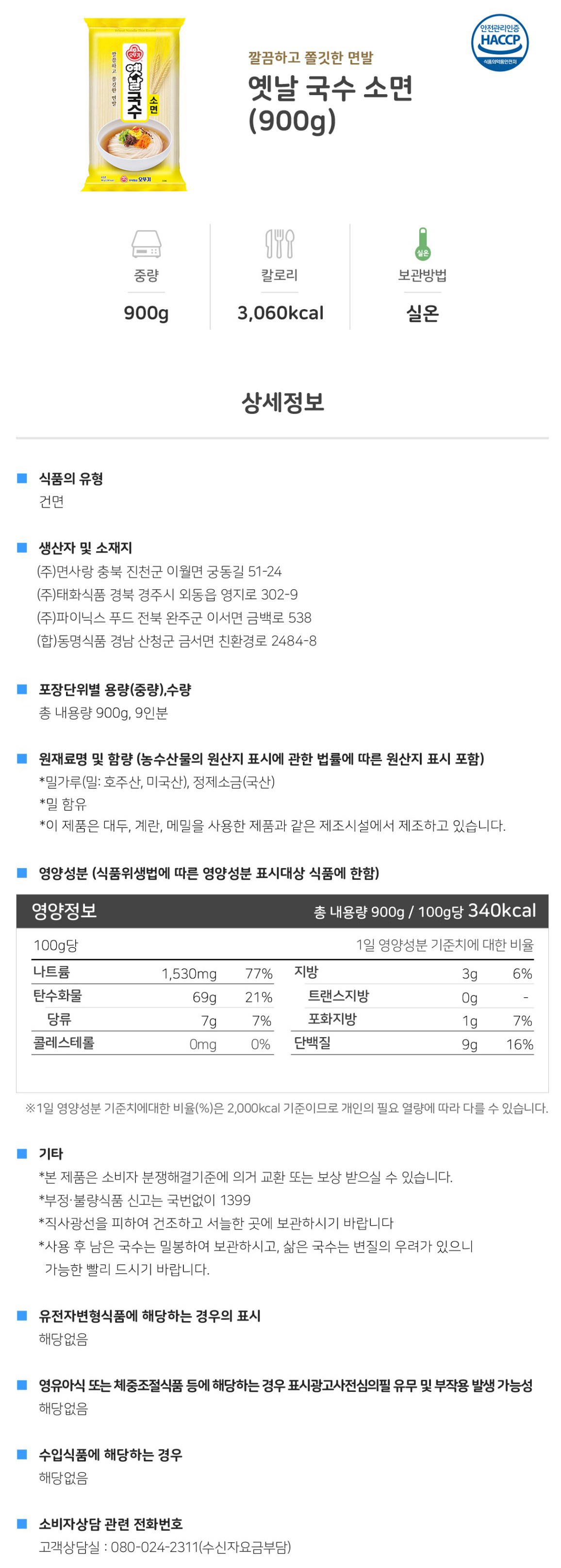 | 제품명 | 옛날 국수 소면 | 식품의 유형 | 국수류 |