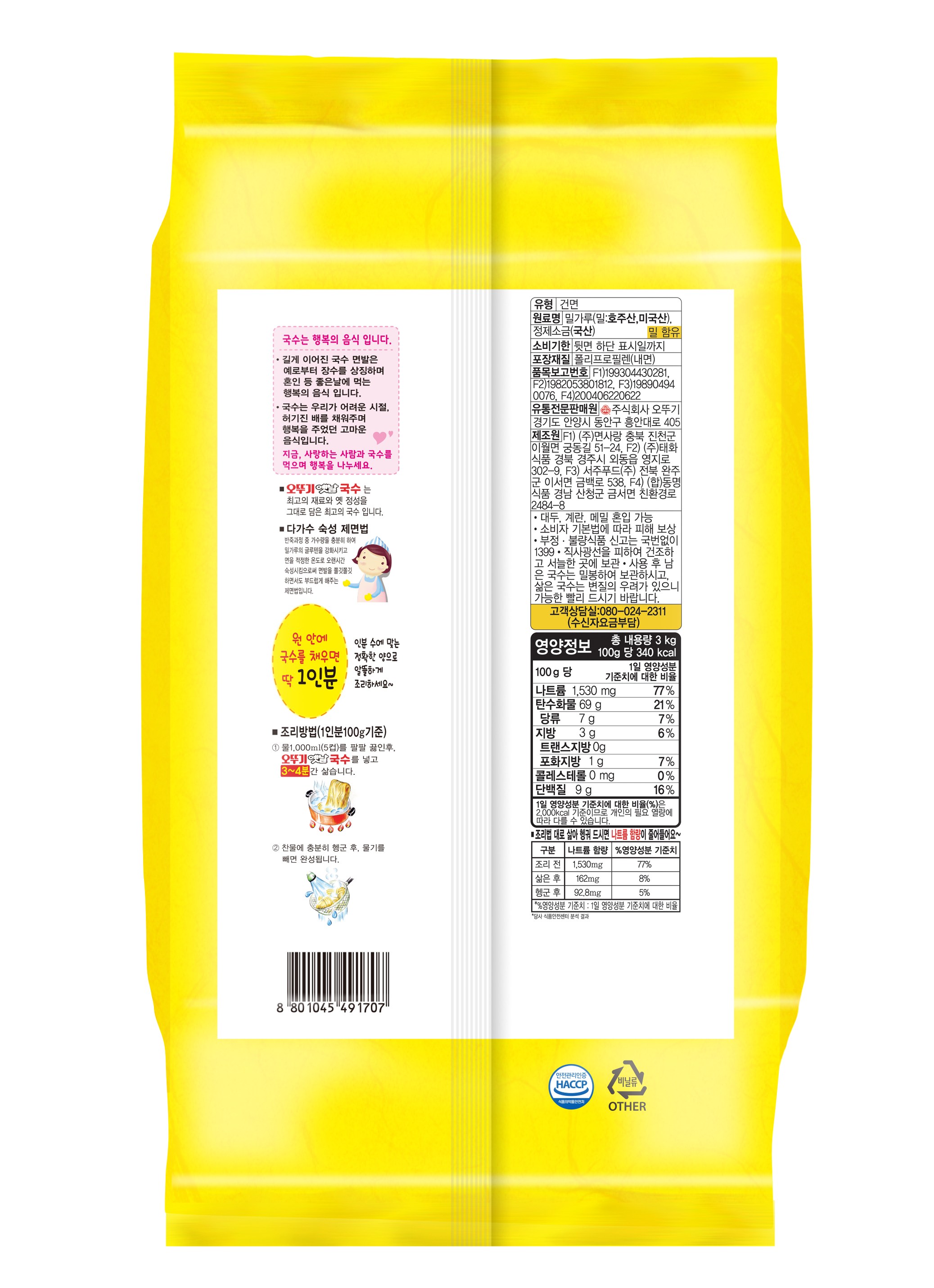 | 제품명 | 옛날국수 소면 | 식품의 유형 | 건면 |