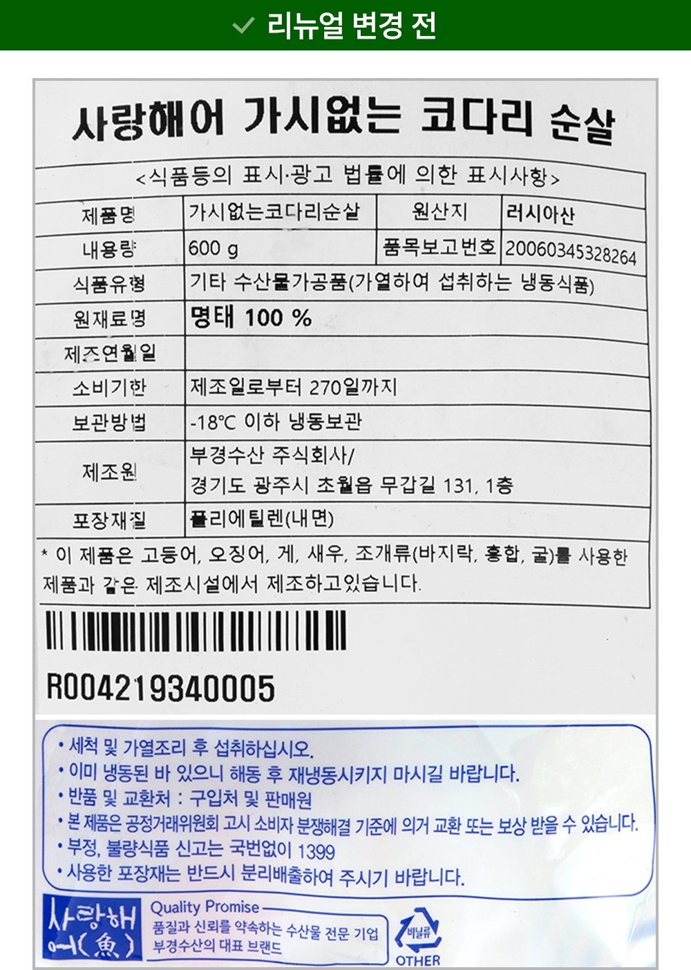 다만, 판매자의 제시사항이 관계법령보다 소비자에게 유리한 경우에는 판매자 제시사항이 적용됩니다.