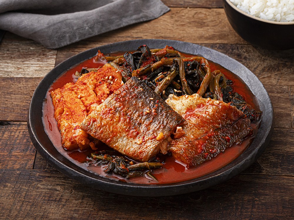 양념: 고춧가루 1큰술, 설탕 1/2큰술, 다진 마늘 1/2큰술, 된장 1/2큰술, 들기름 1큰술, 진간장 15 ㎖