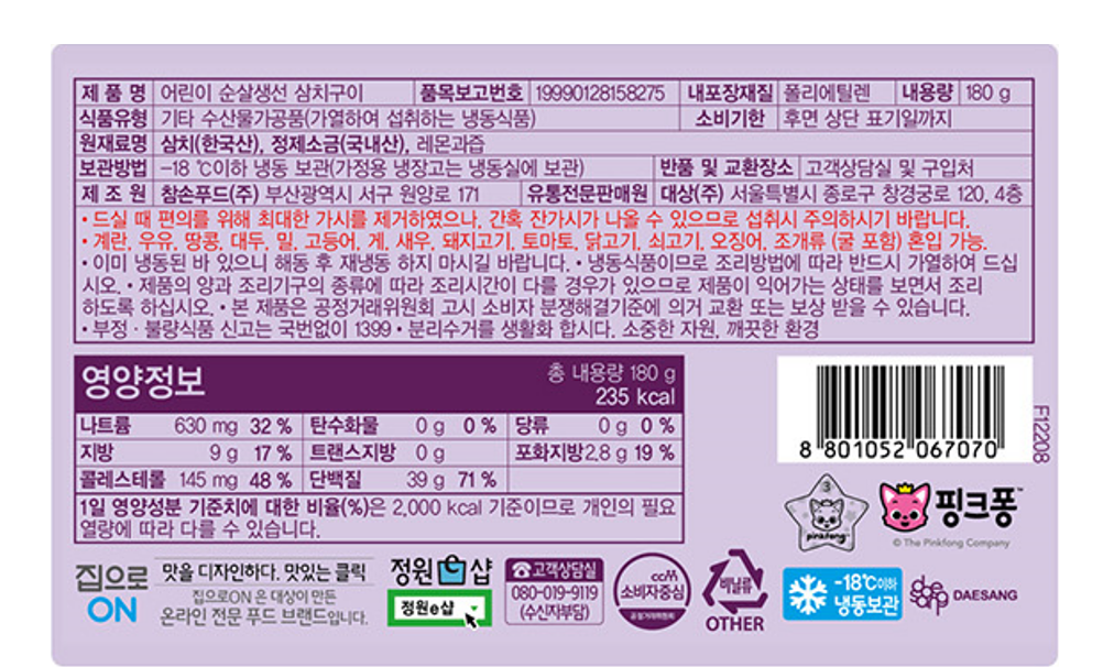 - 보관방법: 냉동보관