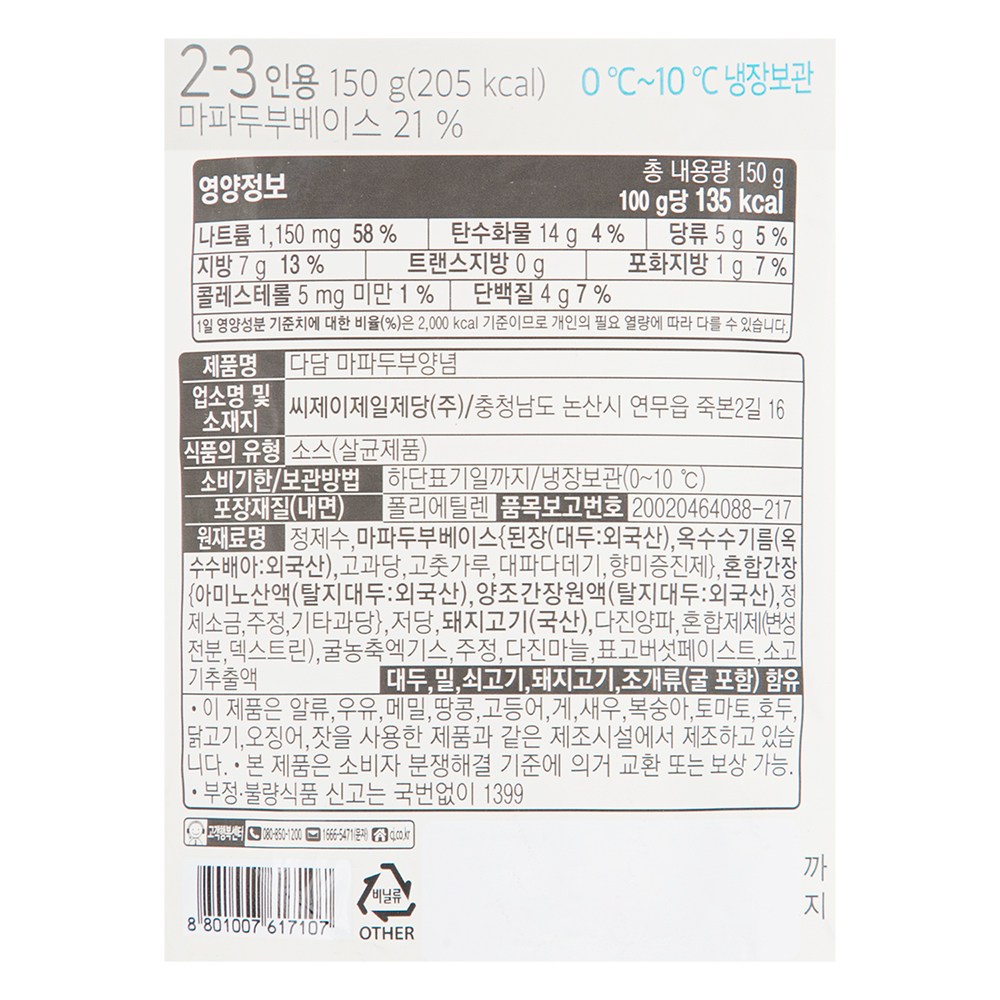 | 포장단위별 내용물의 용량(중량), 수량 | 150g x 2개 | 원재료명 및 함량 | 컨텐츠참조 |