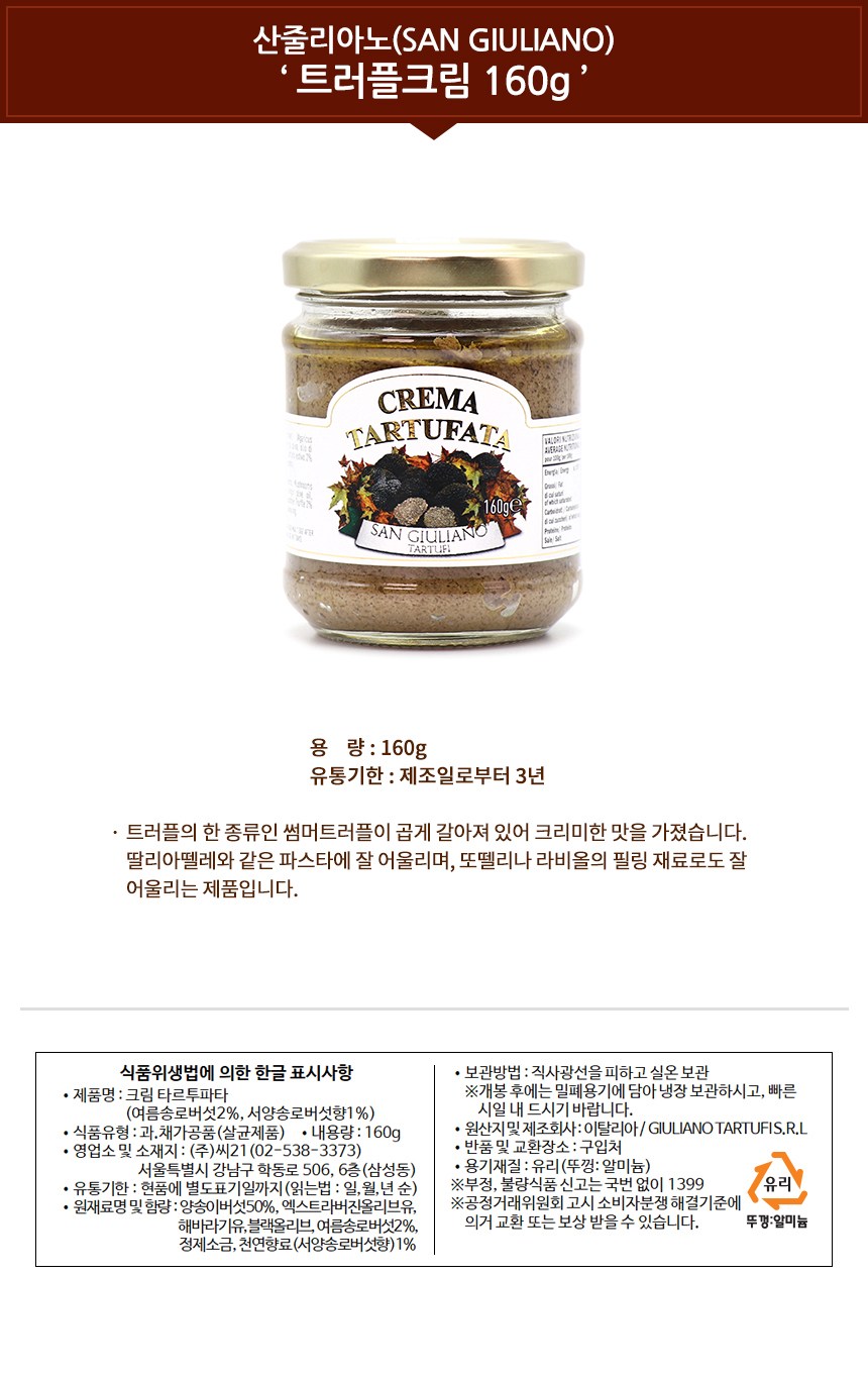 | 제품명 | 트러플크림 | 식품의 유형 | 과채가공품(살균제품) |