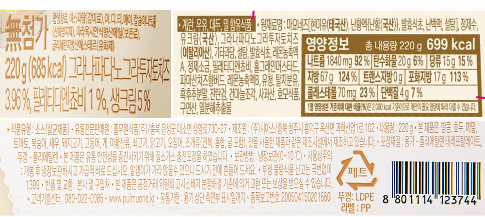 | 제품명 | 풀무원 클래식 시저 드레싱 | 식품의 유형 | 컨텐츠 참조 |