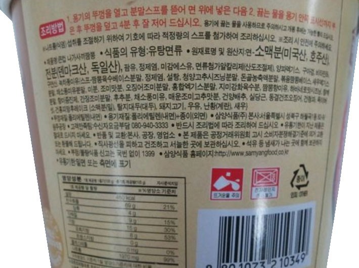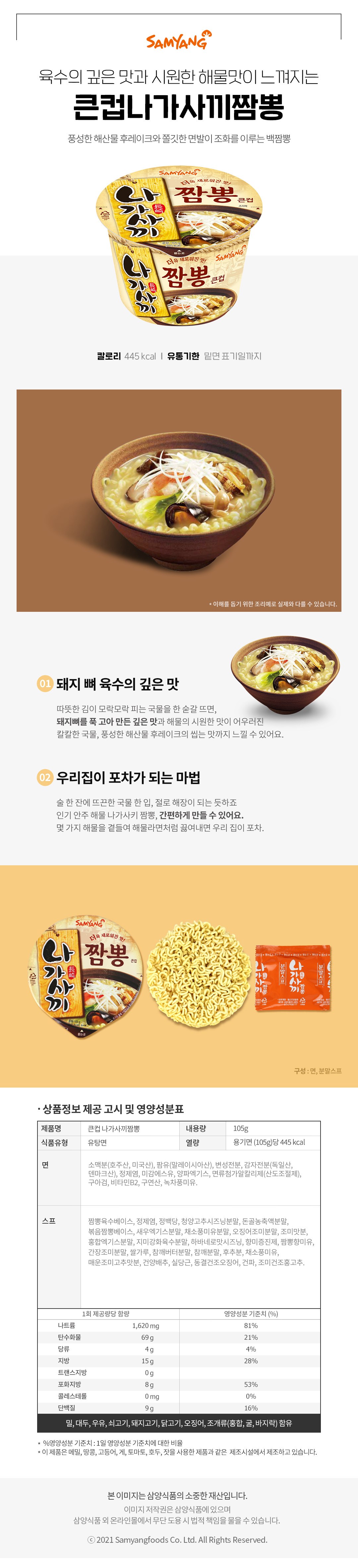 | 제품명 | 큰컵 나가사끼짬뽕 | 식품의 유형 | 유탕면류 |