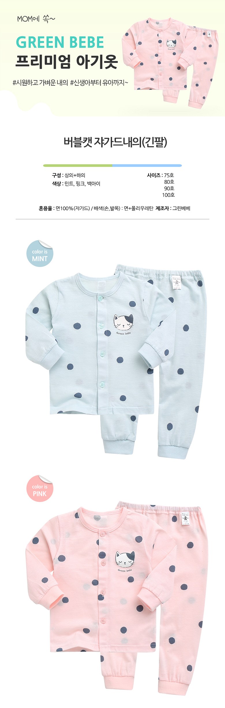 | 품명 및 모델명 | 그린베베 봄여름 버블캣 쟈가드내의(긴팔) | KC 인증정보 | CB014R1020-1015, CB014R2107-4001 |