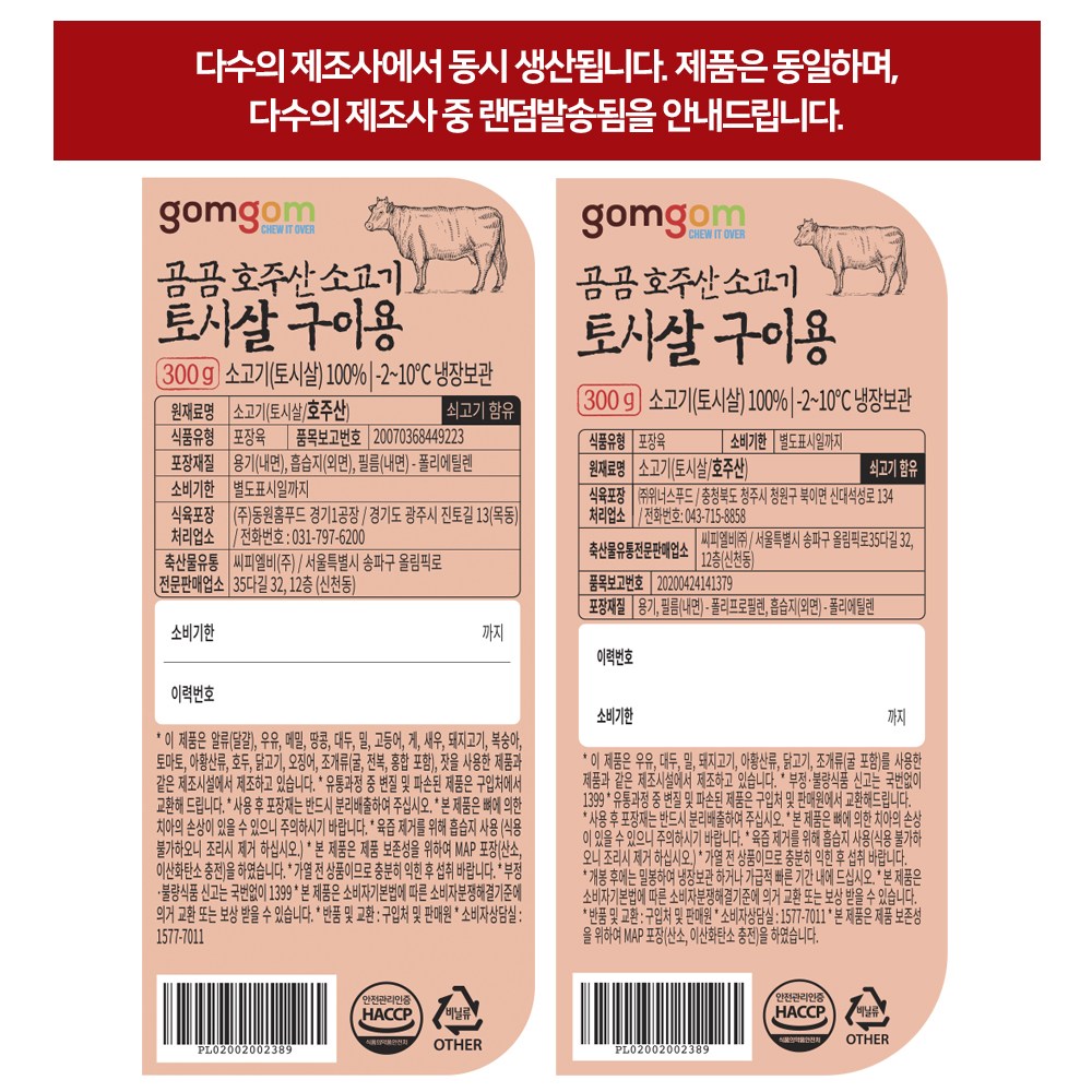 | 제조연월일, 소비기한 또는 품질유지기한 | 소비기한(또는 유통기한) : 2026년 04월 27일 이거나 그 이후인 상품 제조년월일 : 2026년 04월 19일 이후인 제조상품 | 세부 품목군별 표시사항 | 축산물 등급 표시 - 해당없음 / 이력번호 표시유무 - 이력번호 표시제품임 |