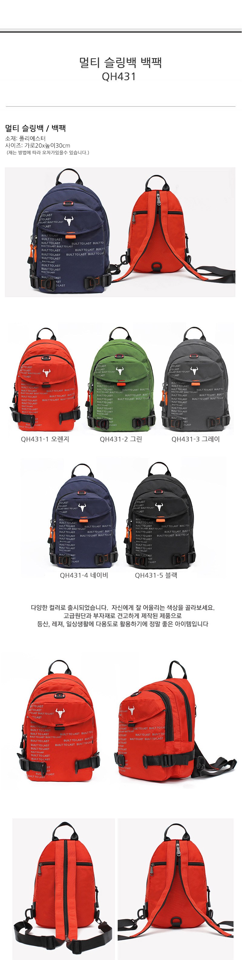 | 종류 | 멀티슬링백/백팩 | 소재 | 폴리에스터 |