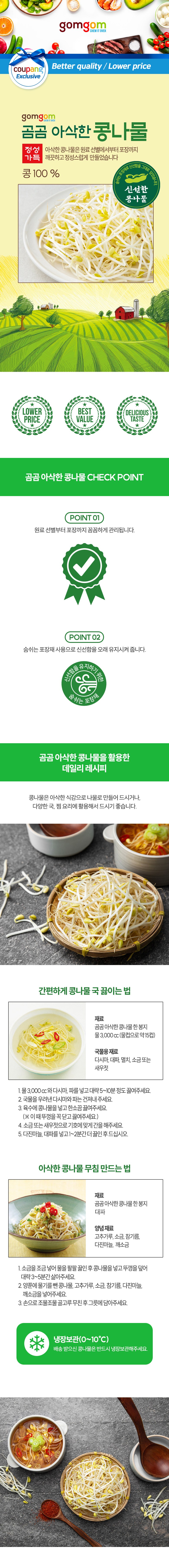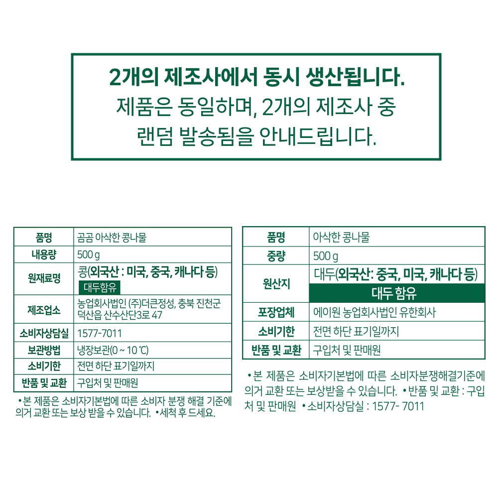 | 품목 또는 명칭 | 곰곰 아삭한 콩나물 | 포장단위별 내용물의 용량(중량),수량,크기 | 500g, 1봉 |