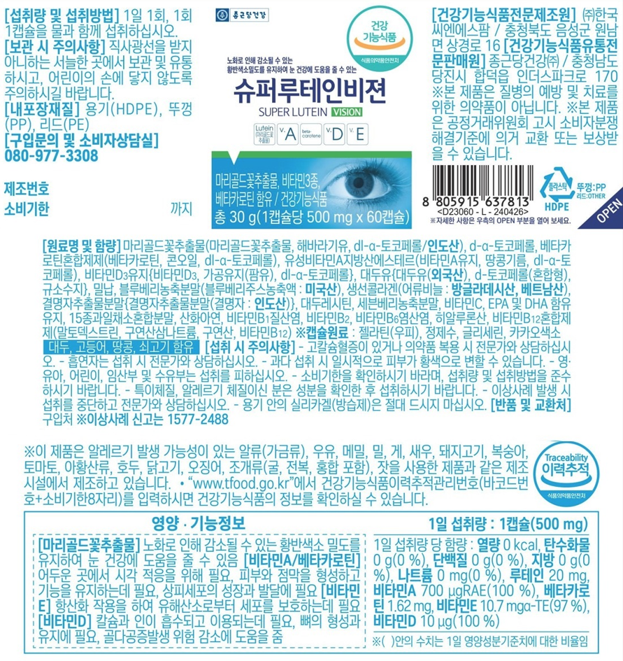 | 제품명 | 슈퍼루테인비젼 | 제조업소의 명칭과 소재지 | 컨텐츠 참조 |