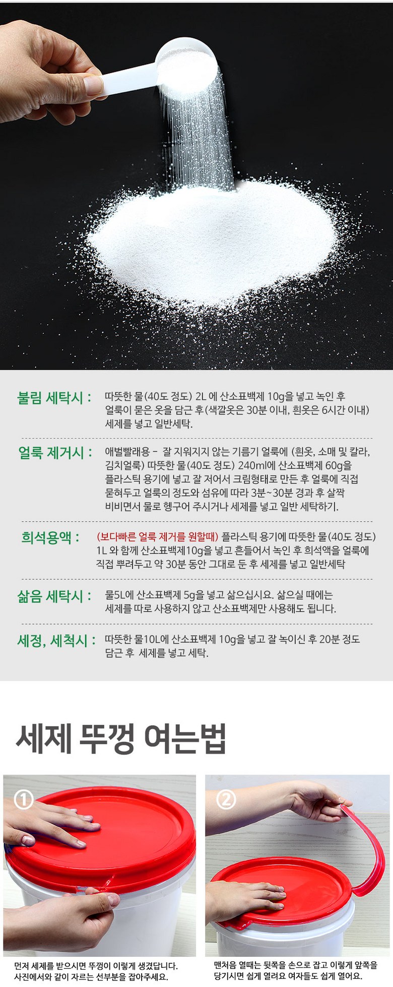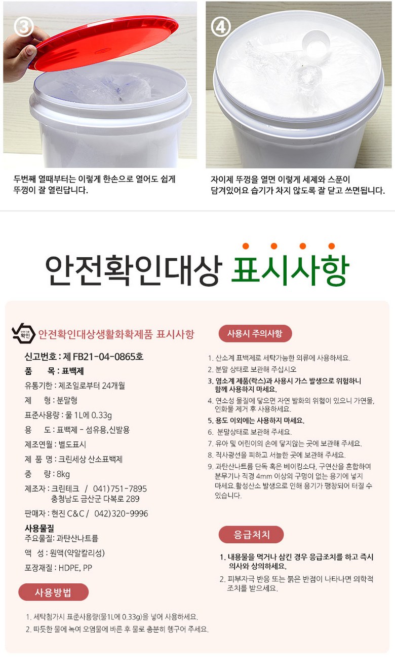 | 품목 및 제품명 | 상품 상세페이지 참조 | 용도(표백제의 경우 계열을 함께표시) 및 제형 | 상품 상세페이지 참조 |